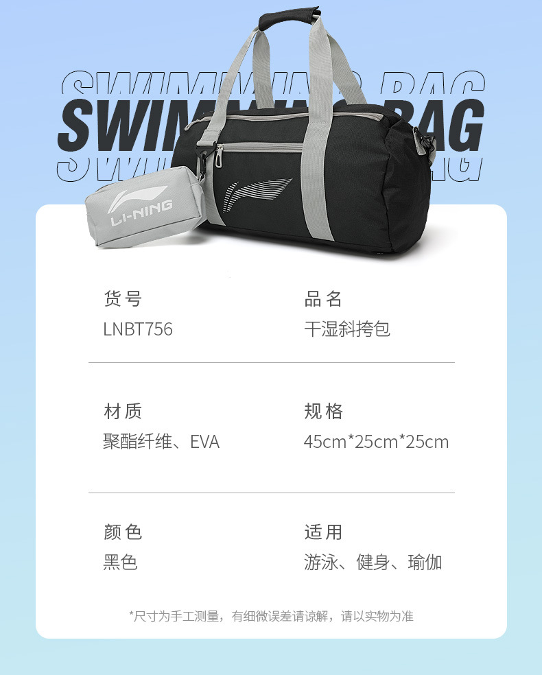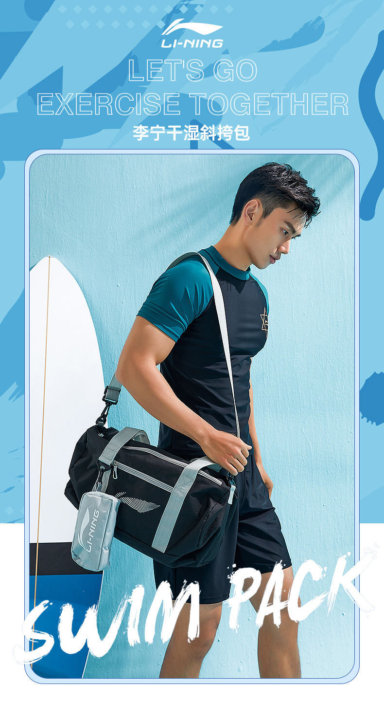 (特)李宁LI NING 756泳包 大容量健身包沙滩收纳斜挎包 男女干湿分离