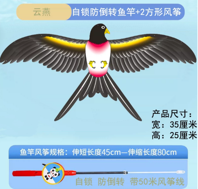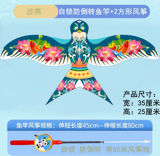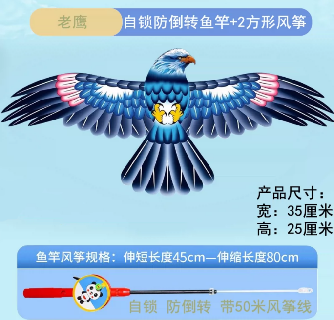 儿童风筝小号手持微风易飞小孩专用钓鱼竿风争新款迷你动态老鹰凨