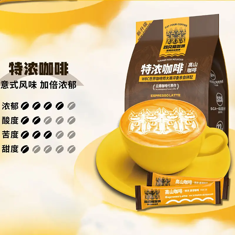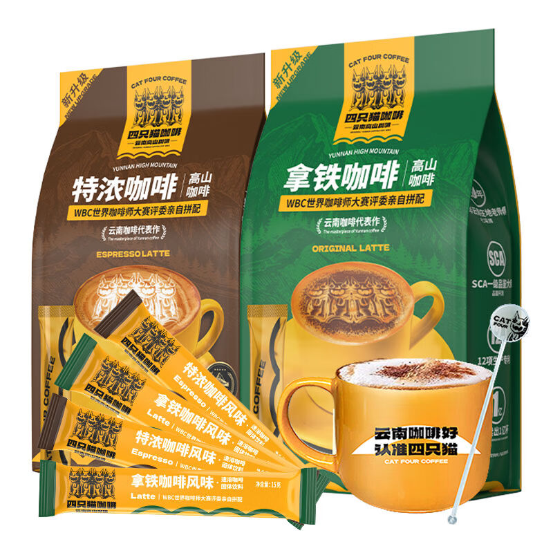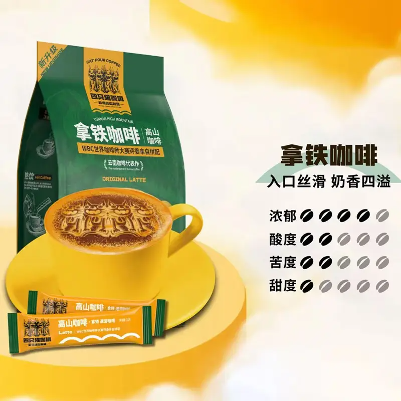 (特)到手60条 卡布奇诺拿铁咖啡 四只猫 三合一速溶咖啡粉提神冷萃