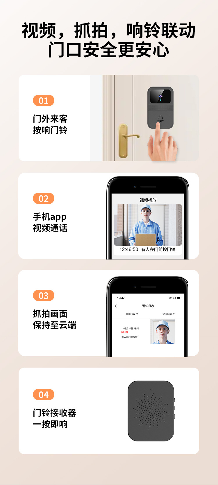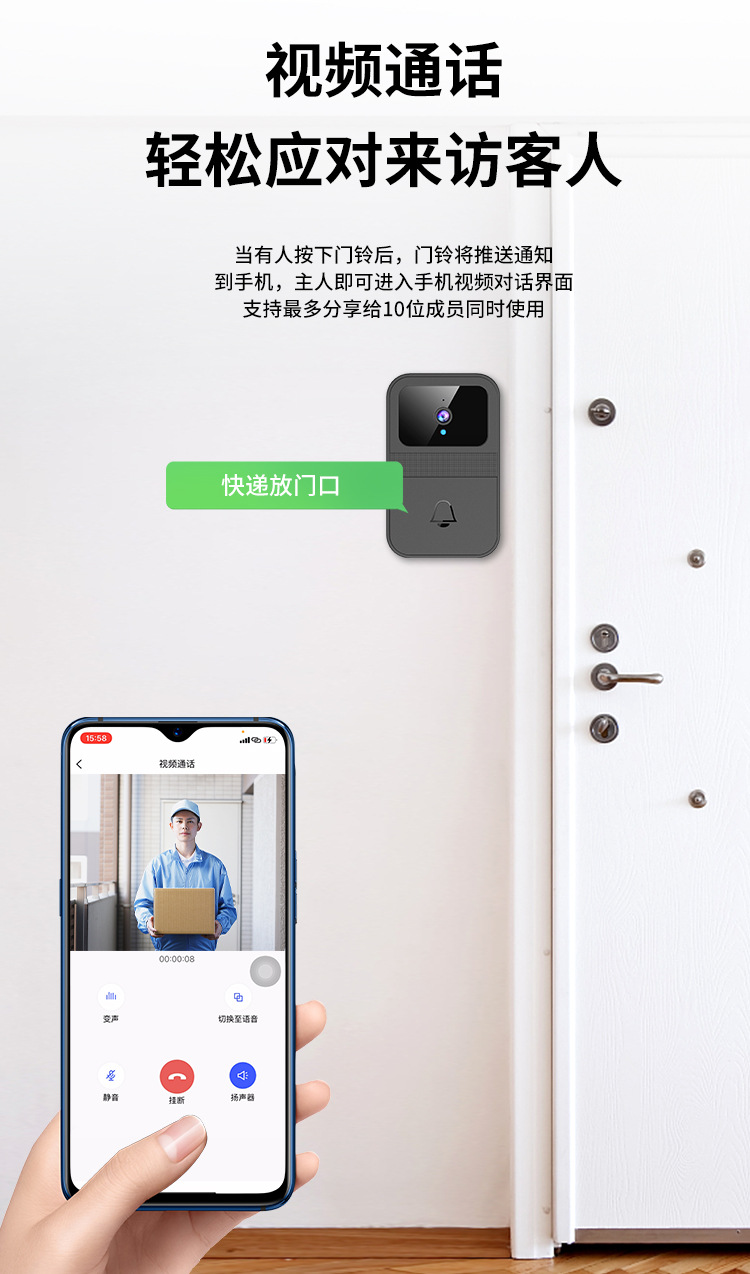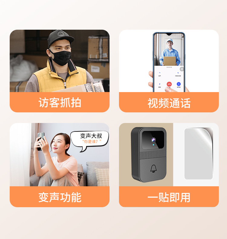 新品D9智能可视门铃 通用门铃远程家用监控视频对讲高清夜视抓拍