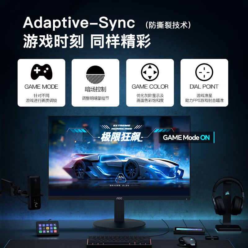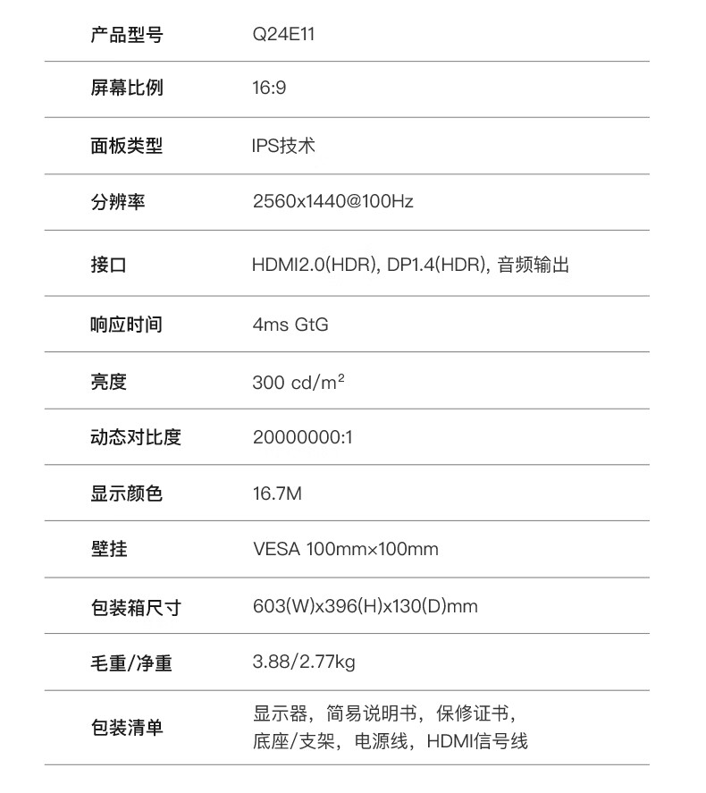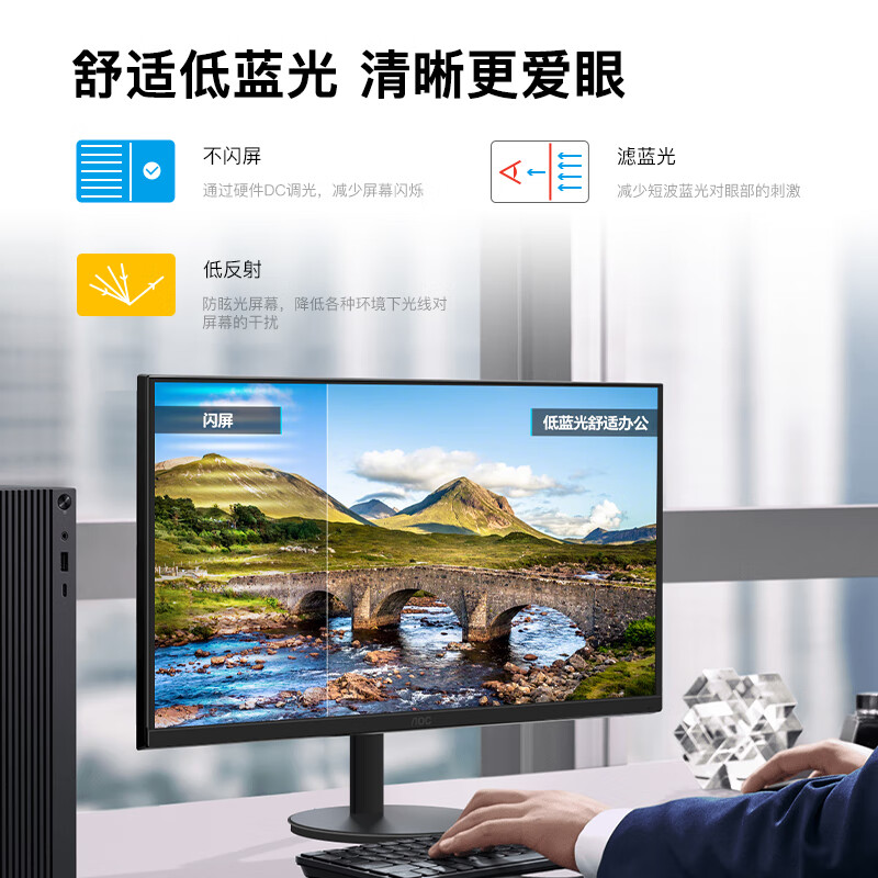 (特)AOC 23.8英寸 2K高清 IPS广色域100Hz HDMI+DP接口 低蓝光不闪屏护眼 三边微边框 节能办公电脑显示器Q24E11