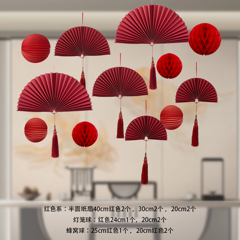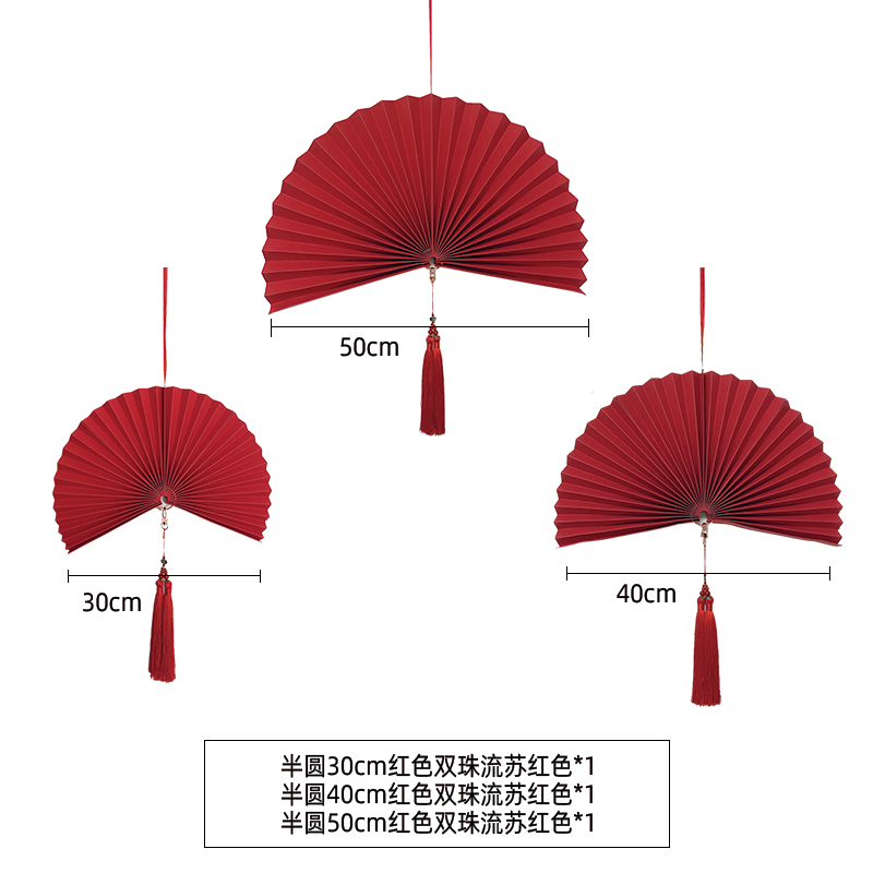 (特)新年元旦节装饰品布置纸扇花折扇珠宝店橱窗商场活动吊件小号挂饰