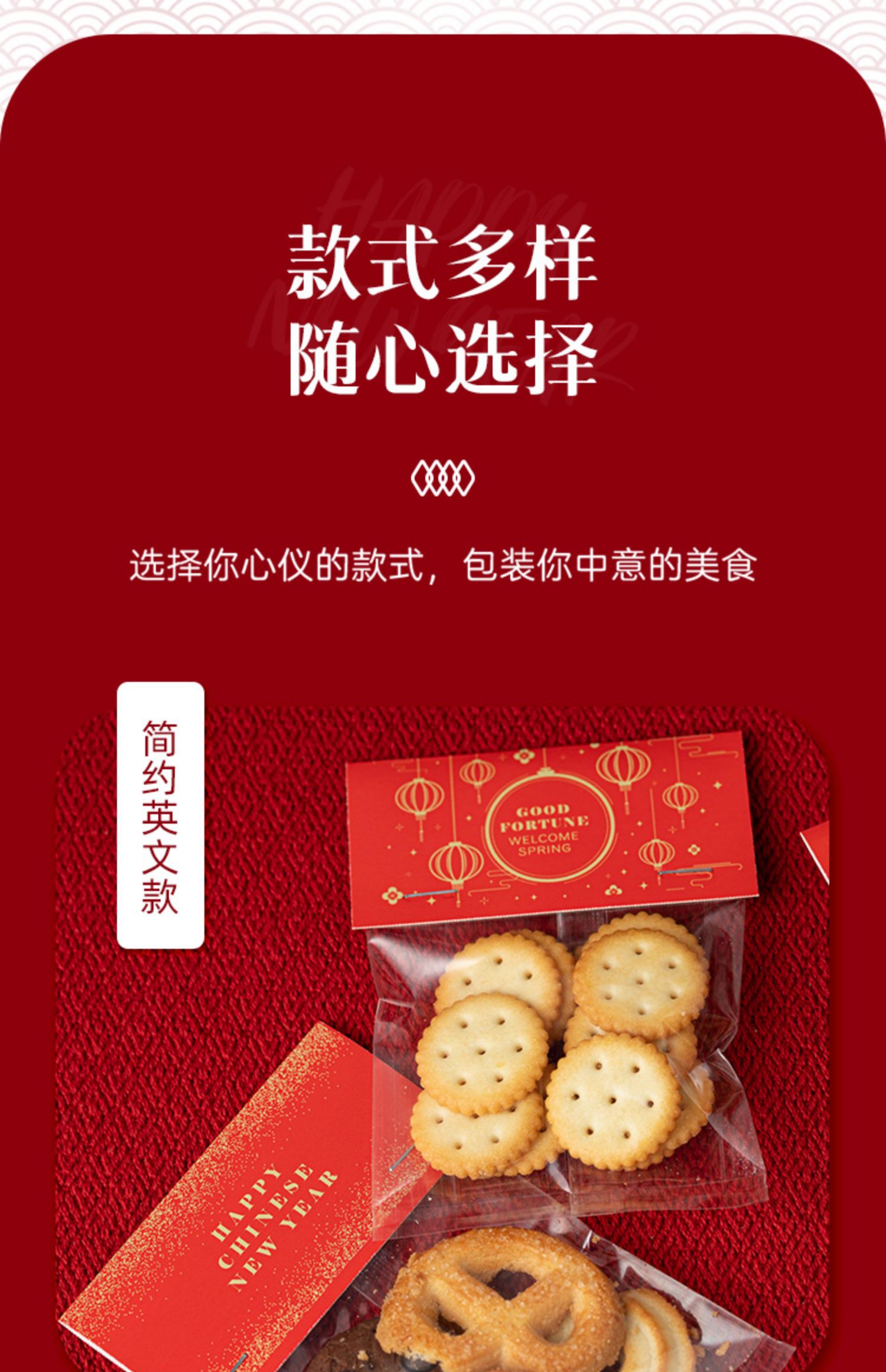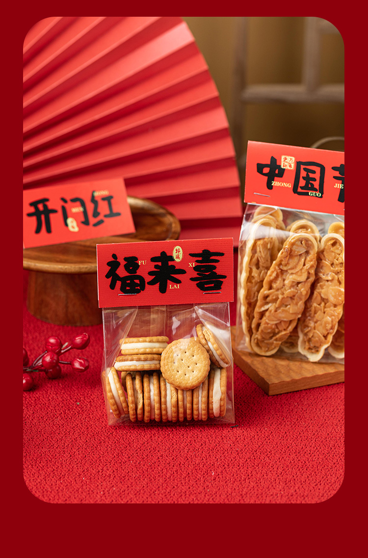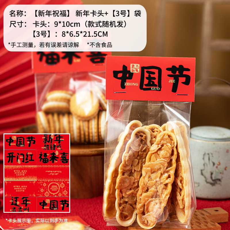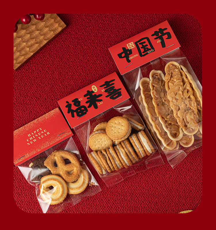 (特)新年饼干包装袋烘焙奶枣糯米船袋子雪花酥曲奇糖果零食卡头自封袋