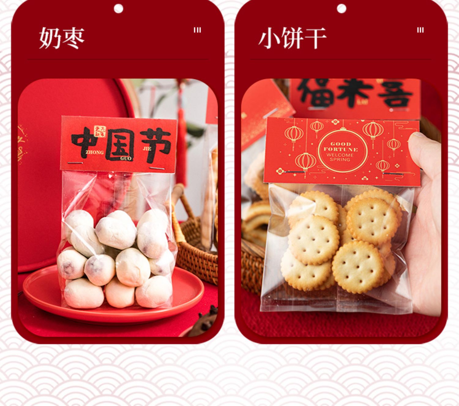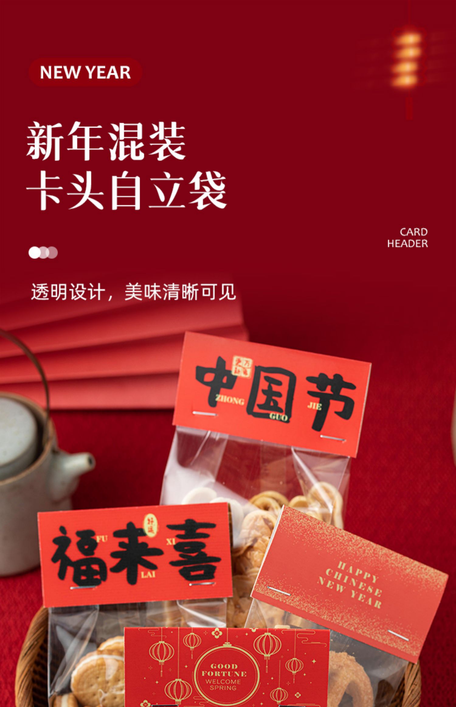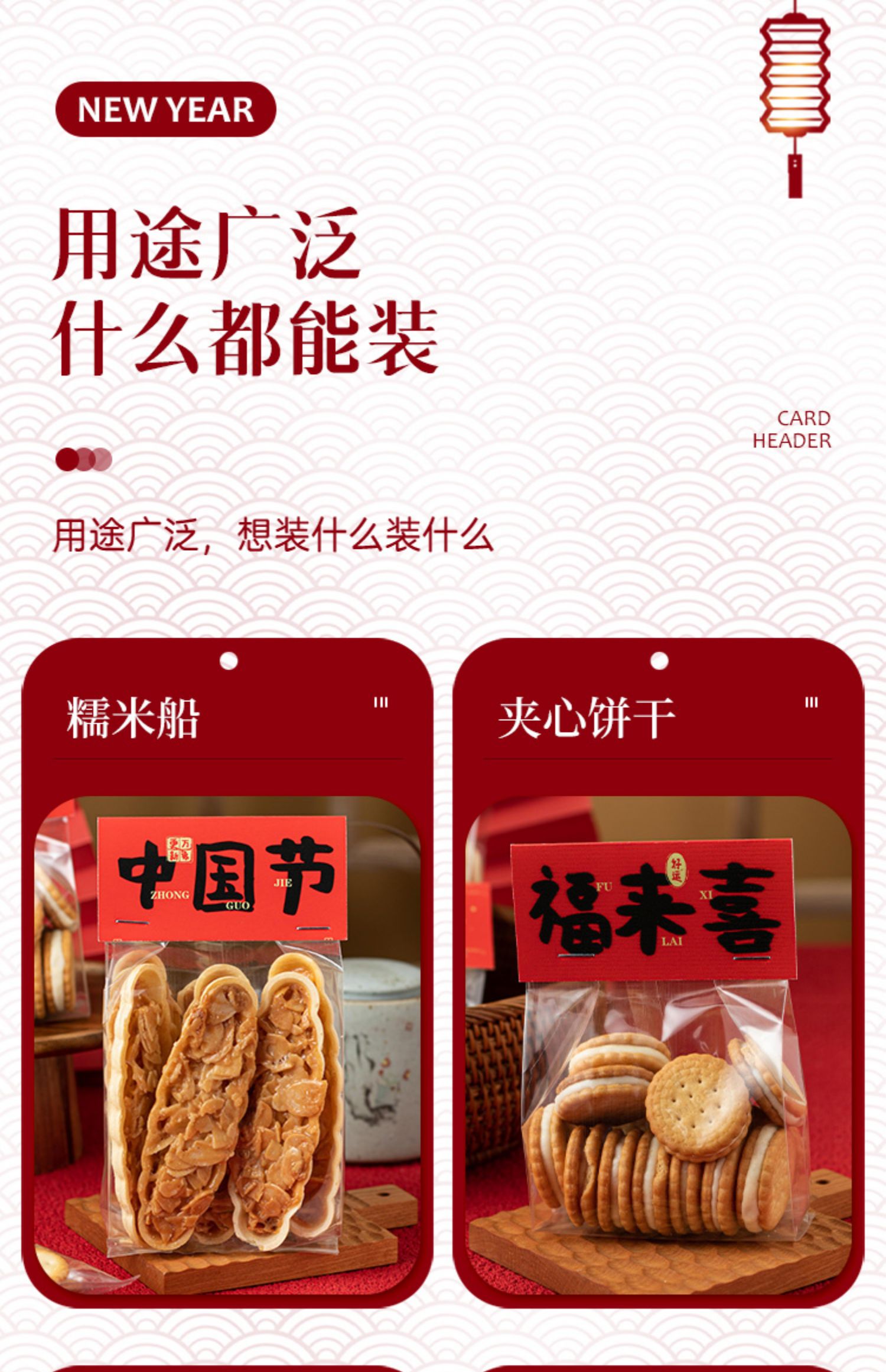 (特)新年饼干包装袋烘焙奶枣糯米船袋子雪花酥曲奇糖果零食卡头自封袋