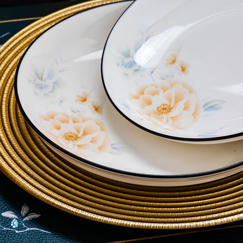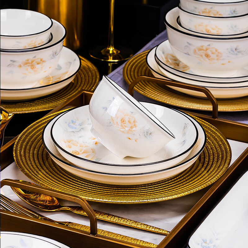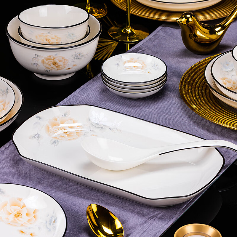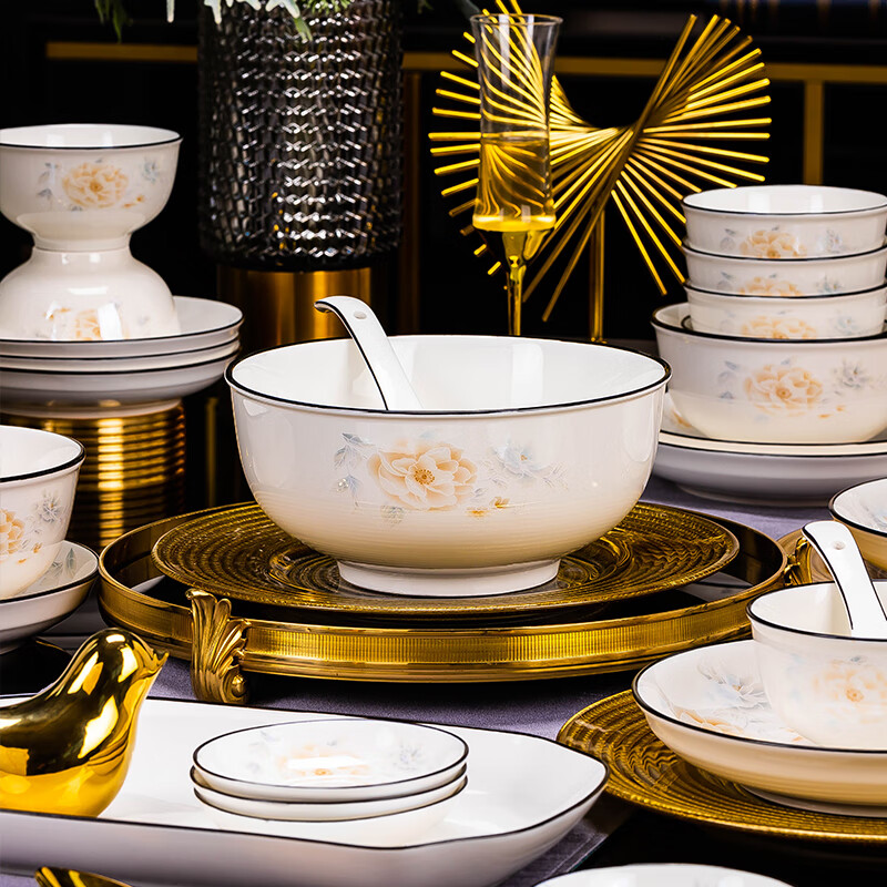 (特)浩雅78头碗碟套装中式景德镇餐具套装礼盒装陶瓷乔迁结婚送礼金枝玉叶