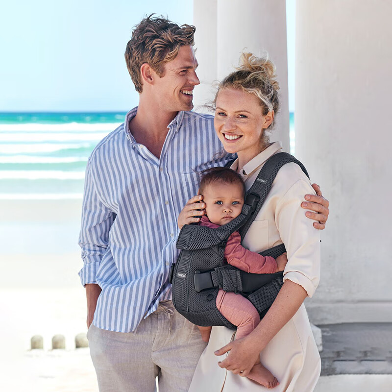 babybjorn瑞典进口婴儿背带宝宝简易抱娃神器解放双手One air烟灰色网眼