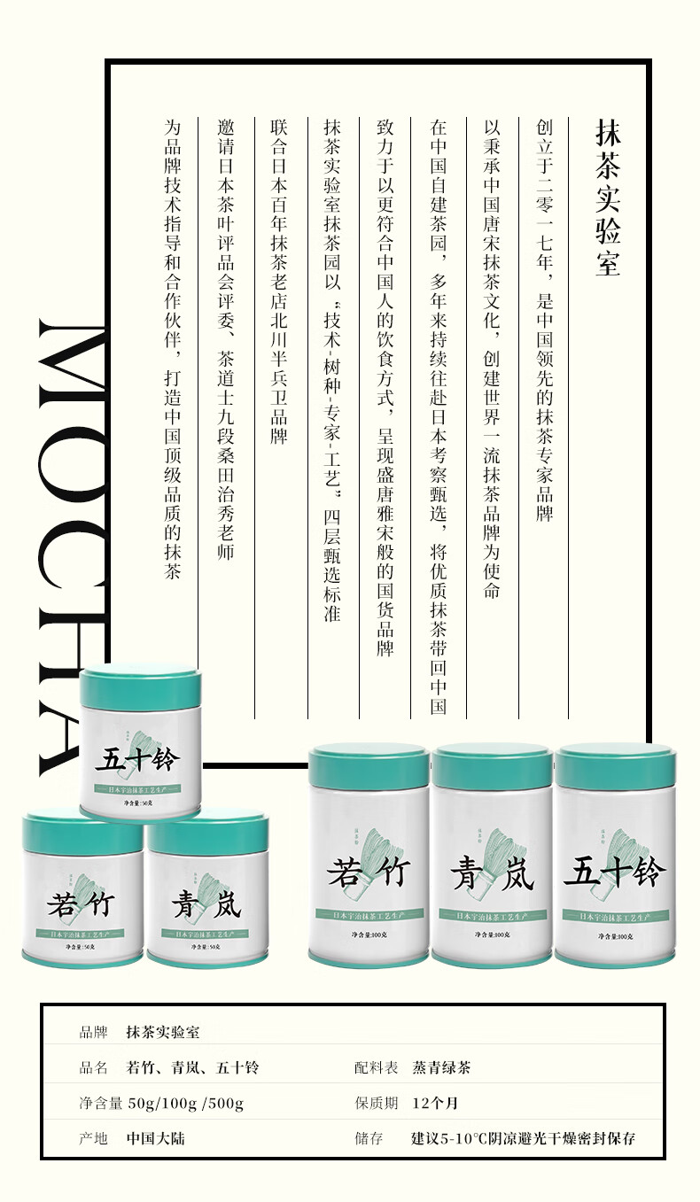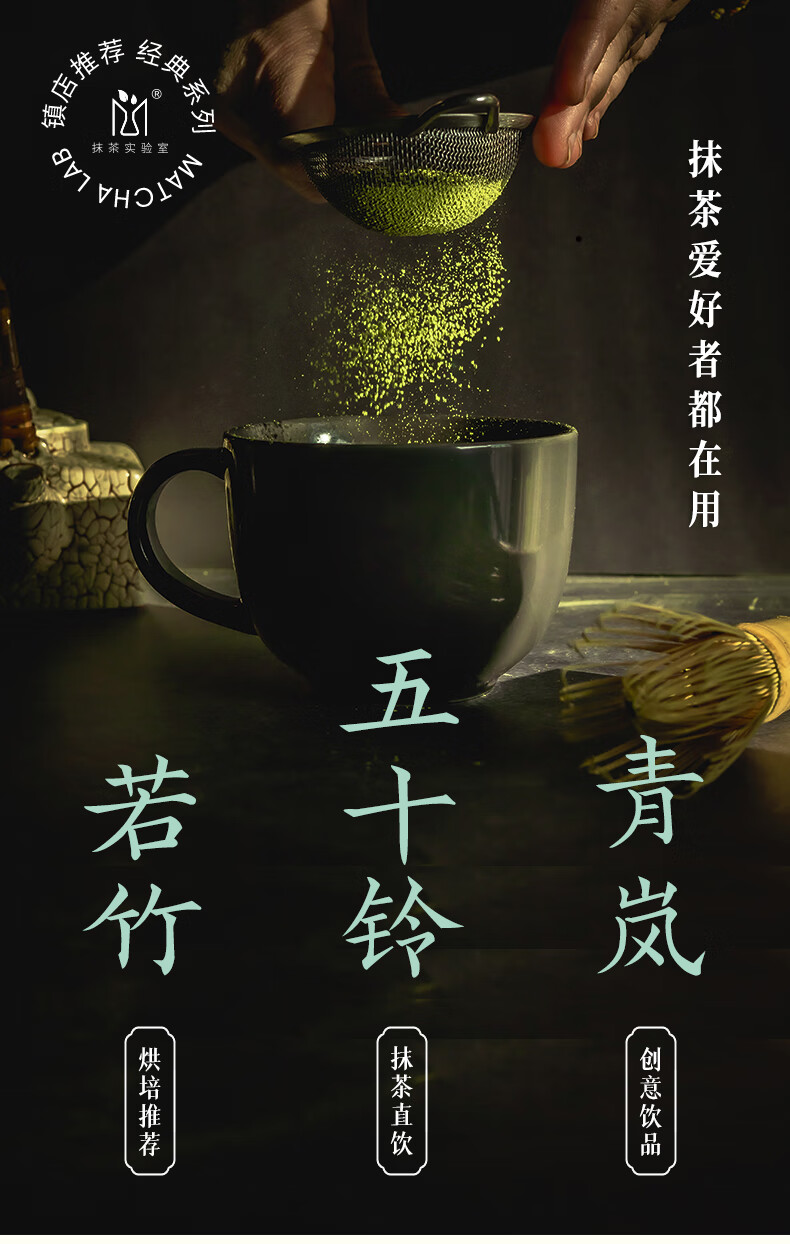 (特)抹茶实验室国产纯抹茶粉五十铃青岚若竹日烘焙冲直饮用茶筅食品
