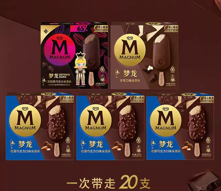 (特)和路雪经典梦龙冰淇淋松露黑巧香草味5盒共20支雪糕冷链包邮冷饮