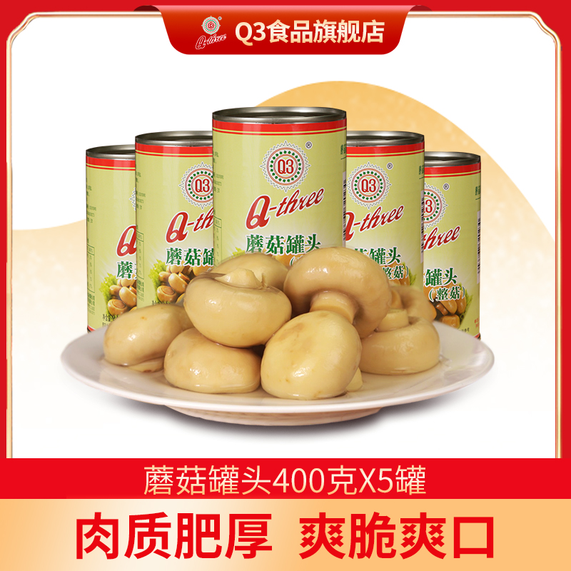 (特)Q3白蘑菇罐头400克*5蘑菇片口蘑即食披萨沙拉甜品奶油蘑菇汤蔬菜