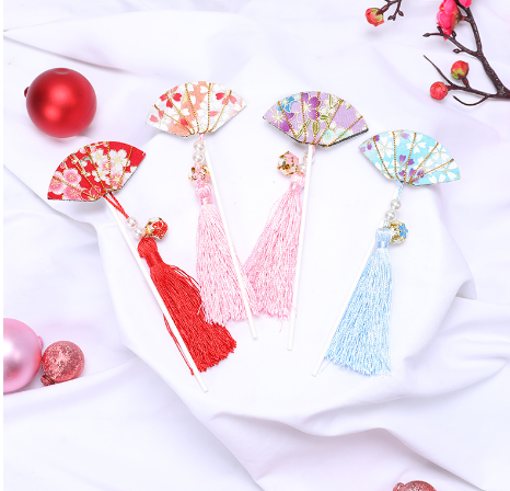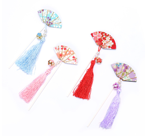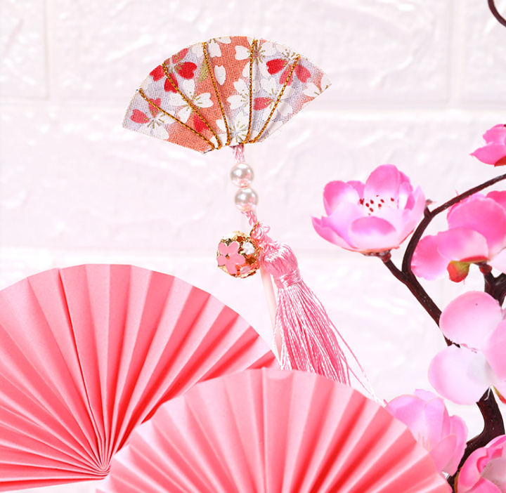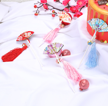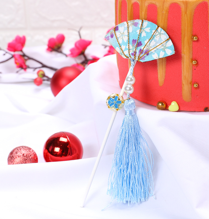 中国风珍珠铃铛吊坠流苏扇子 生日蛋糕装饰插牌