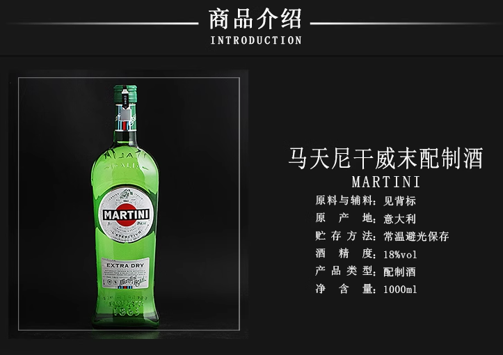 (特)意大利Martini Extra Dry 马天尼干味美思1000ml 威末酒洋酒