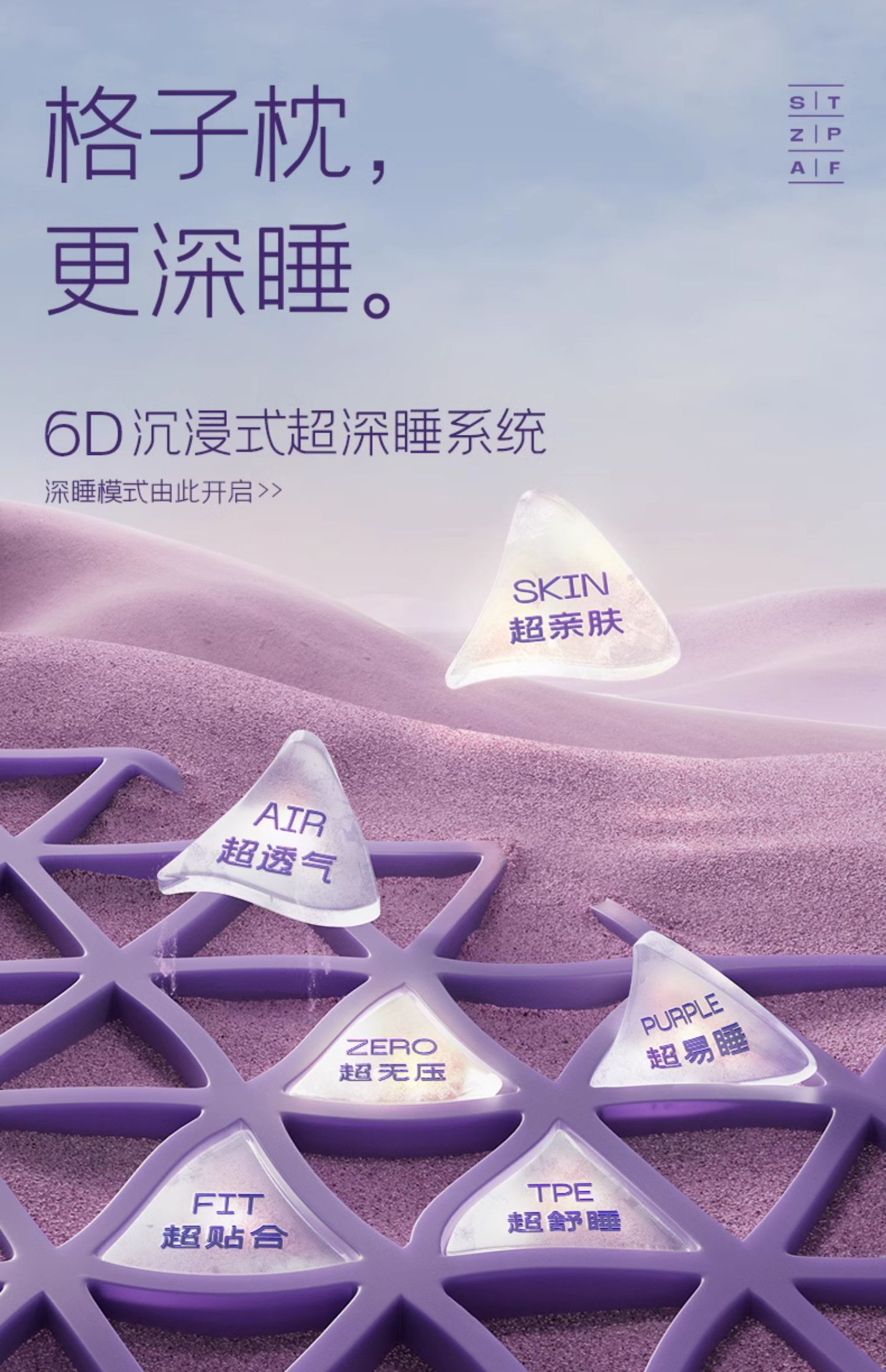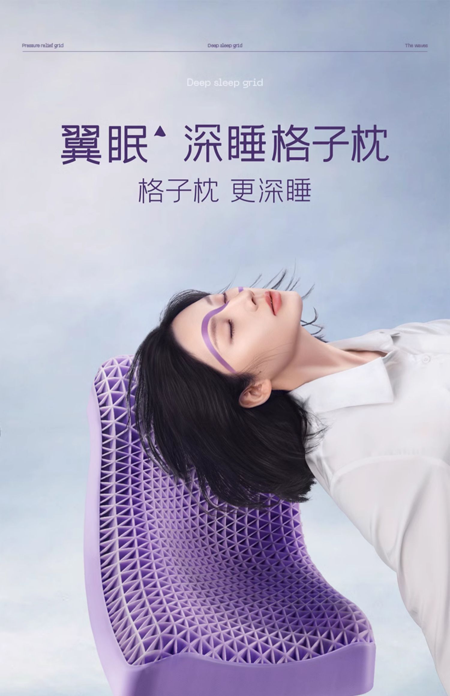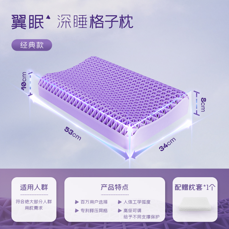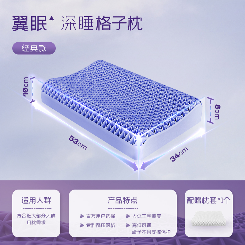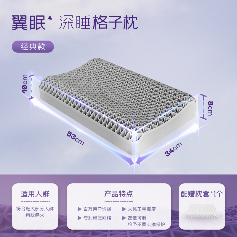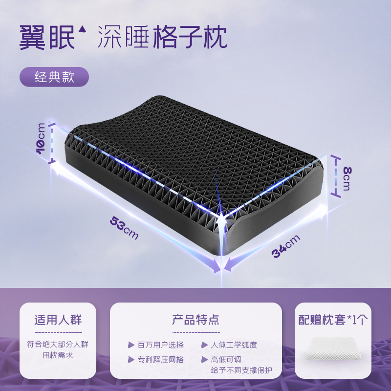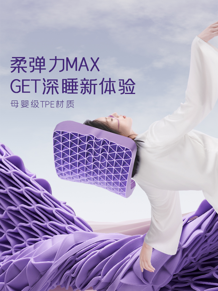 (特)翼眠深睡格子波浪枕TPE护颈椎助睡眠成人释压夏天夏季凉枕头枕芯