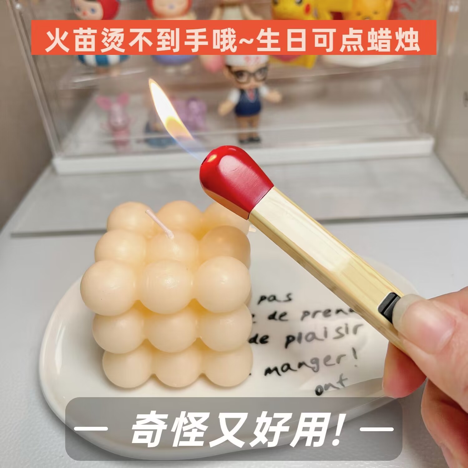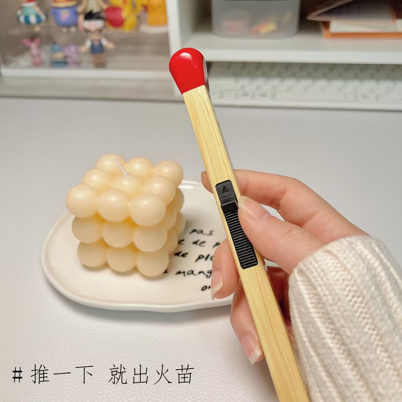 不烫手可爱风火柴棒打火机点香薰蜡烛艾灸长柄点火器可循环充气用