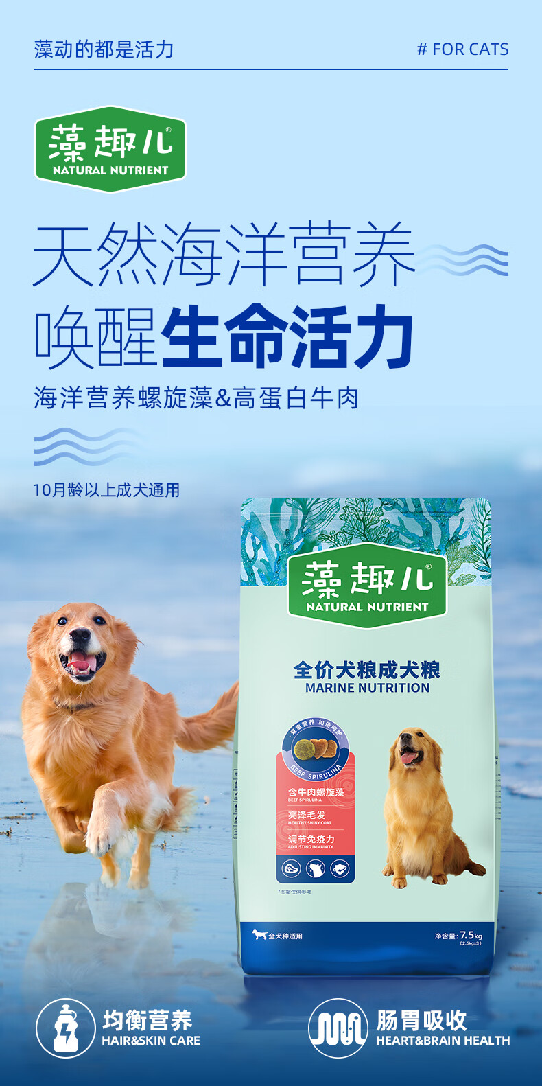 (特)麦富迪狗粮 藻趣儿成犬中大型小型犬通用(牛肉螺旋藻)金毛泰迪