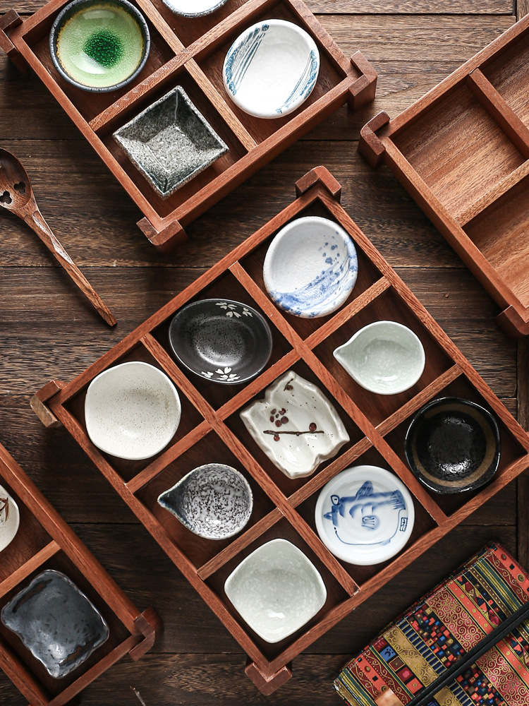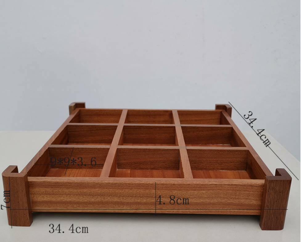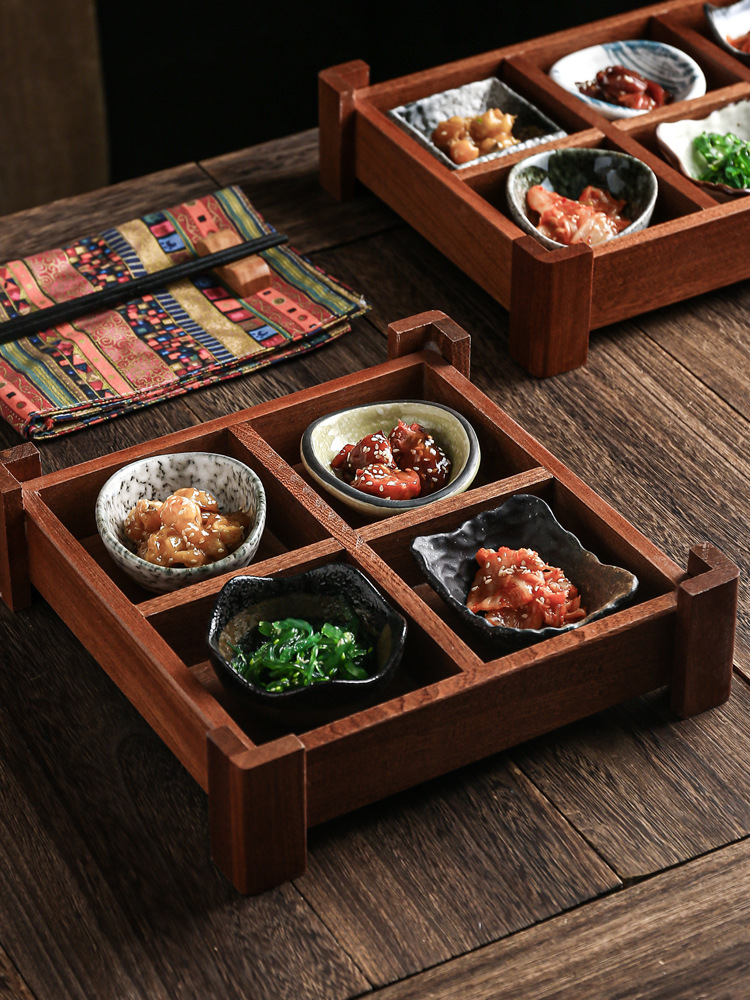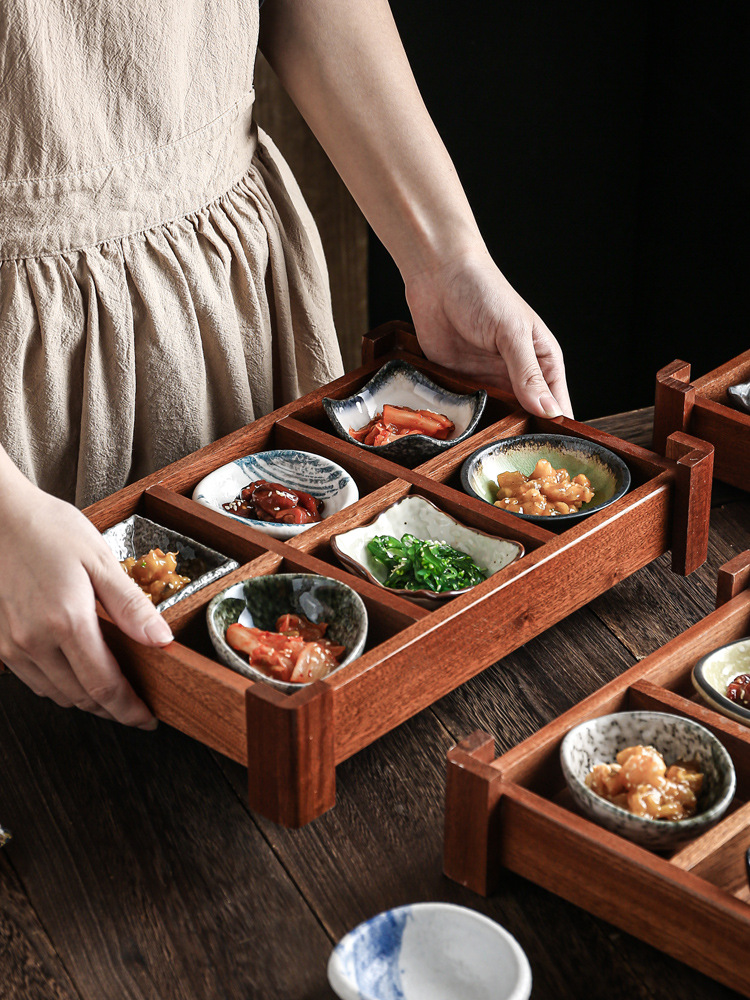 实木木盒无盖多格餐盘料理火锅拼盘陶瓷沙比利九宫格木质餐具