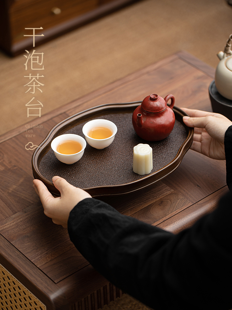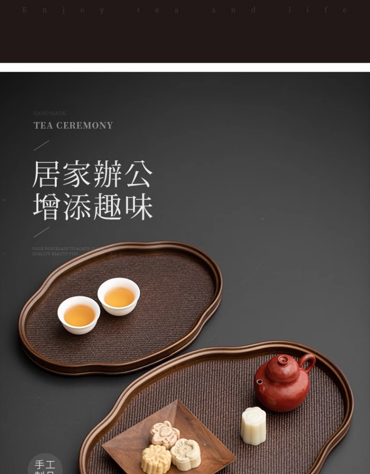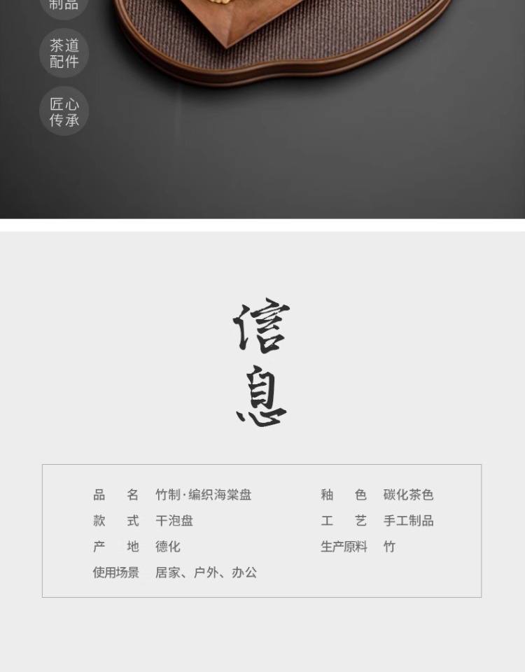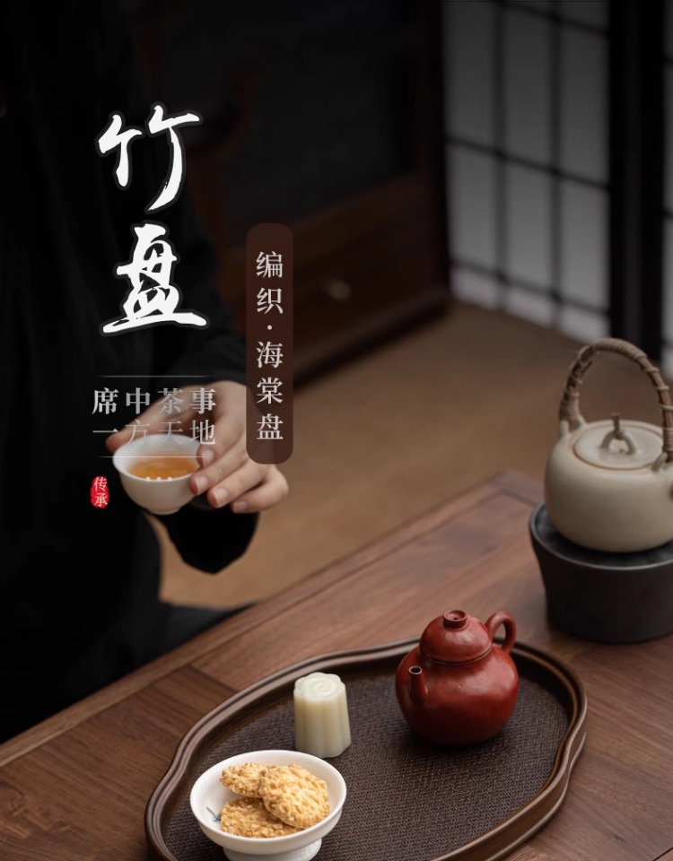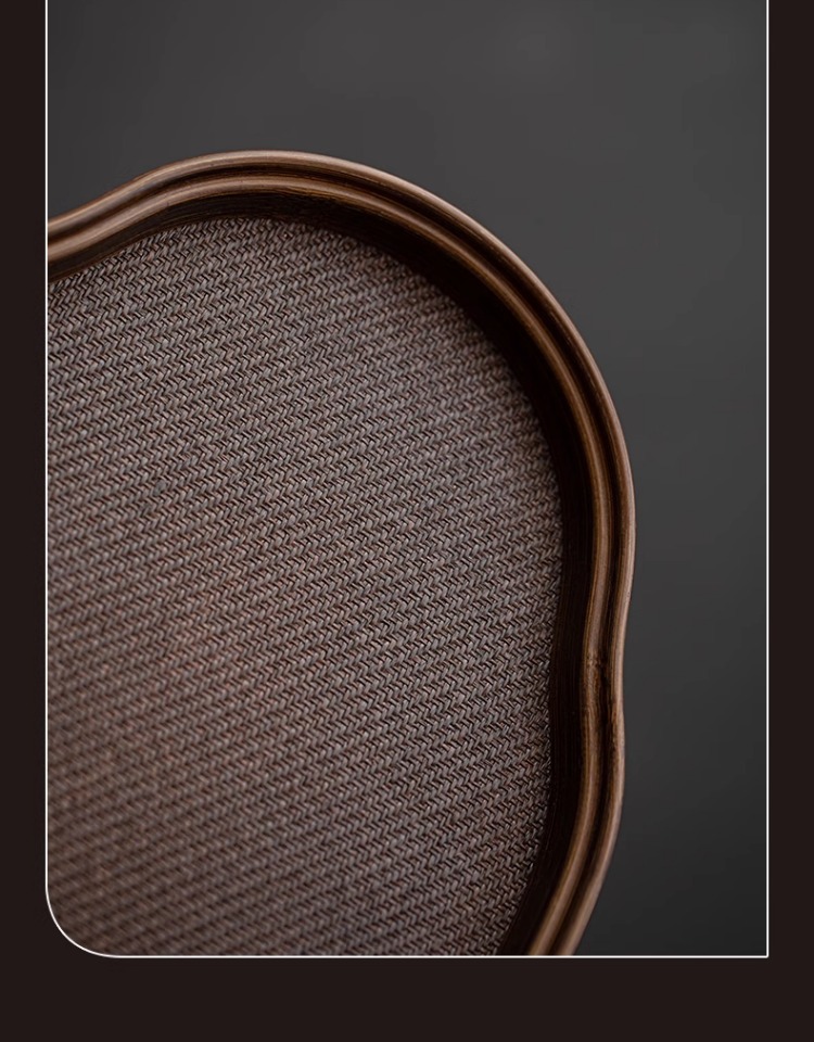(特)小院遇见 中式竹制海棠形托盘编织席面茶壶托功夫茶道家用干泡盘