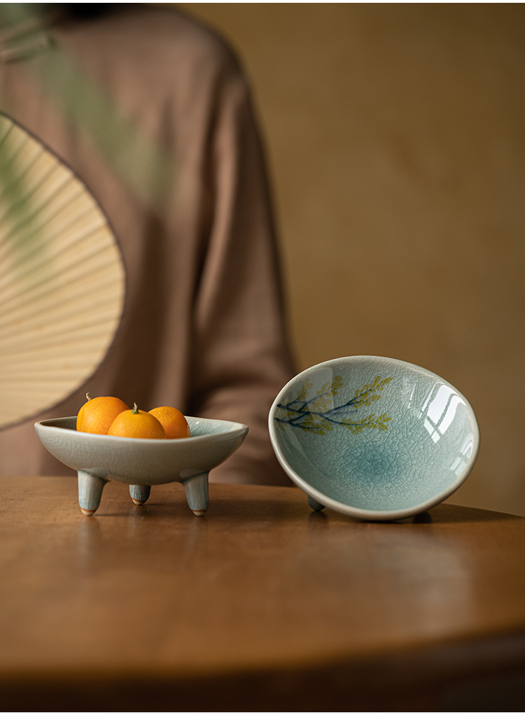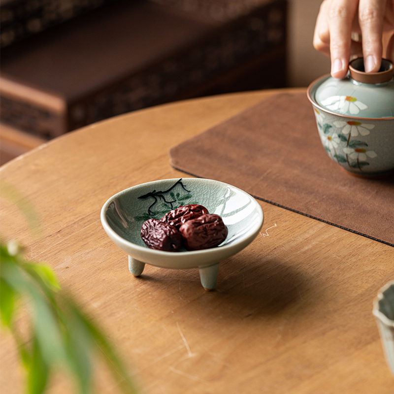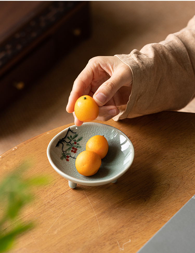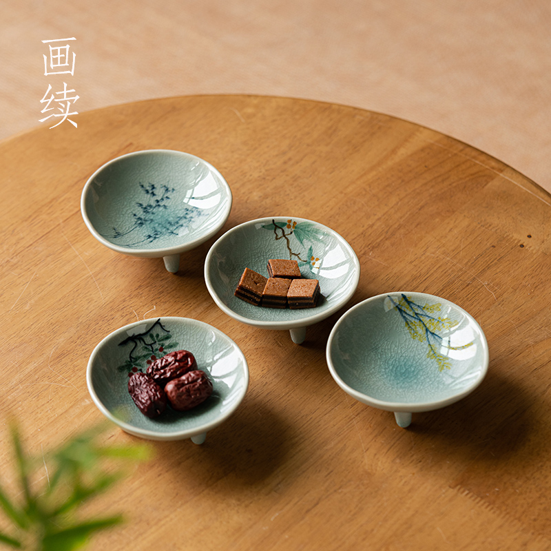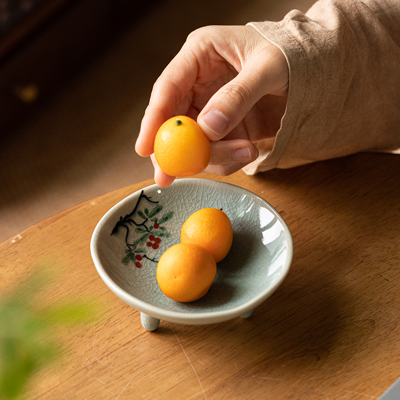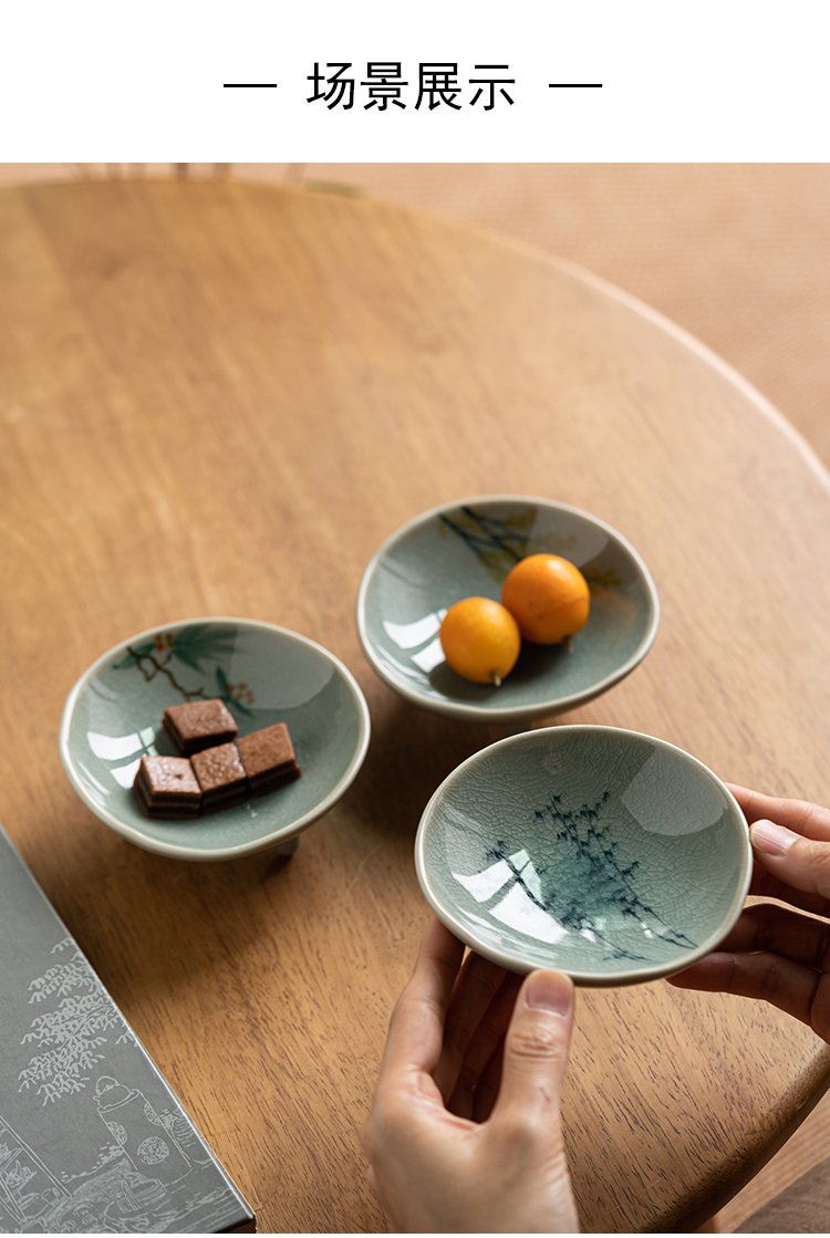 (特)画续手绘中式宋代茶点盘高脚禅意陶瓷水果碟精致点心盘糕点盘小碟