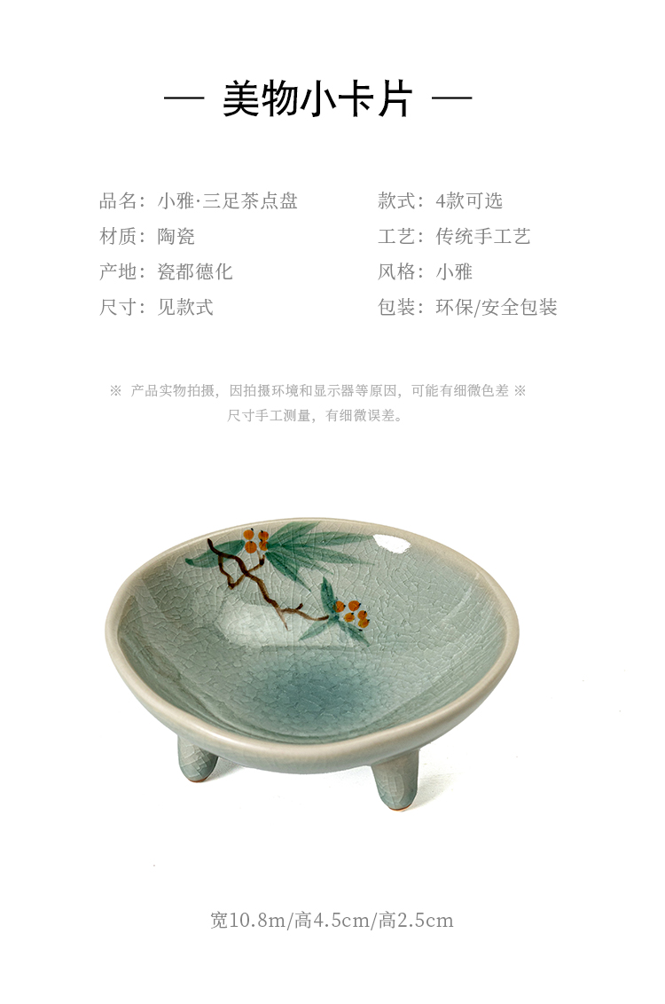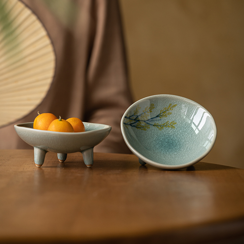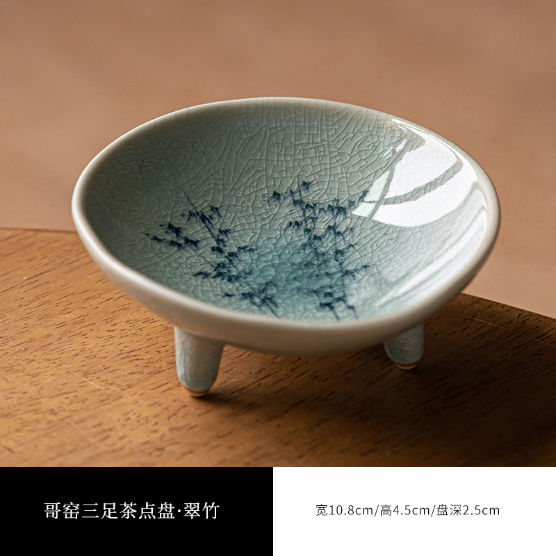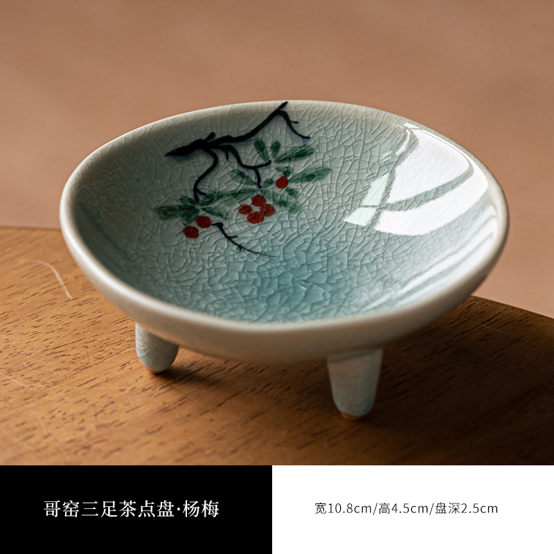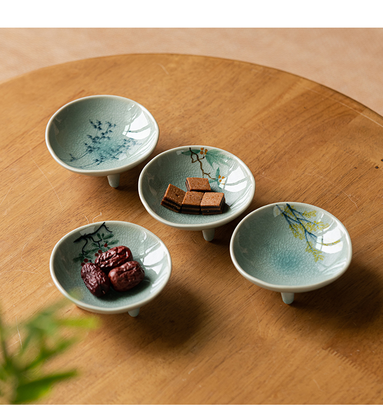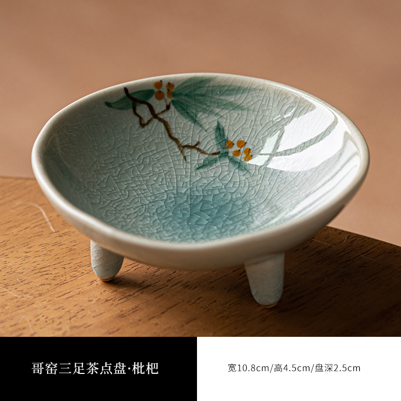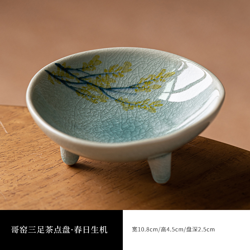 (特)画续手绘中式宋代茶点盘高脚禅意陶瓷水果碟精致点心盘糕点盘小碟