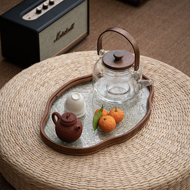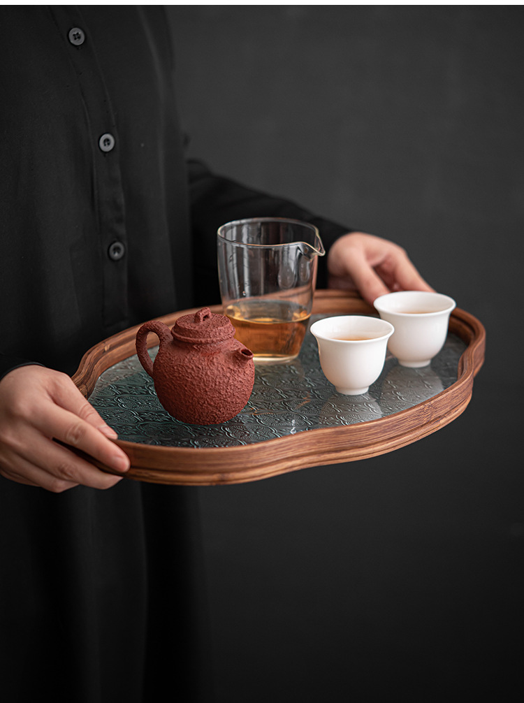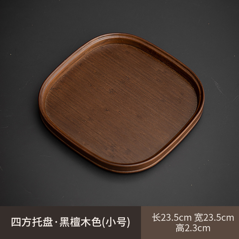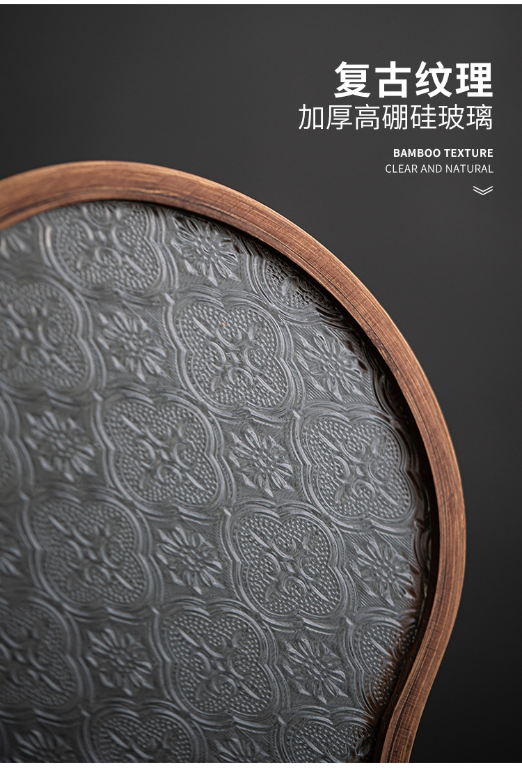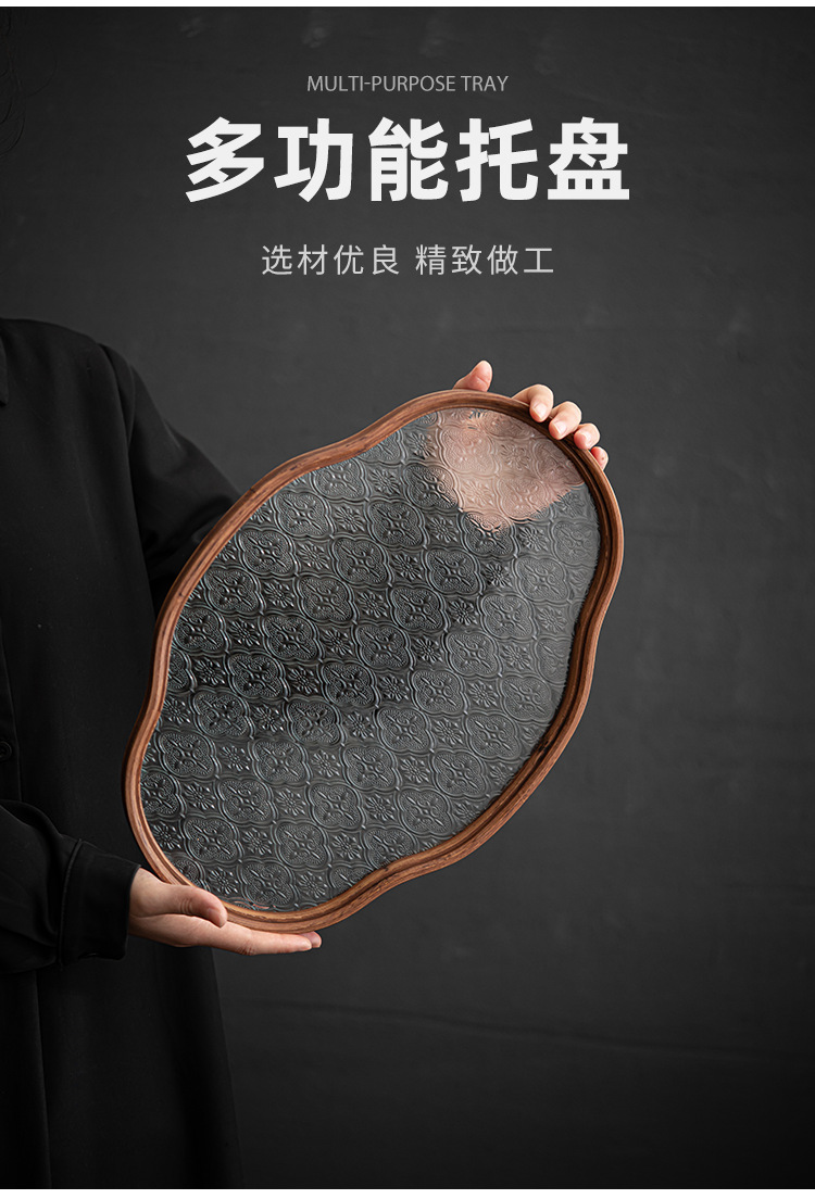 日式海棠花玻璃茶托盘复古竹制茶盘简约家用茶室水果点心盘收纳盘