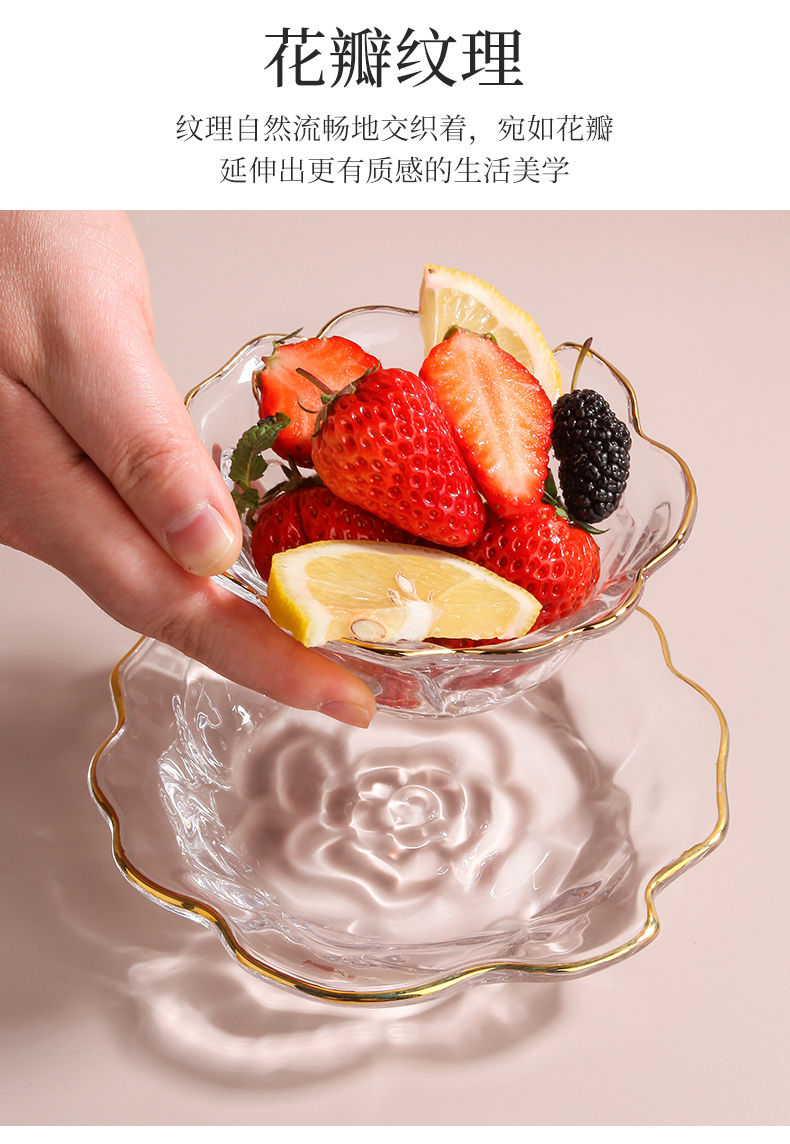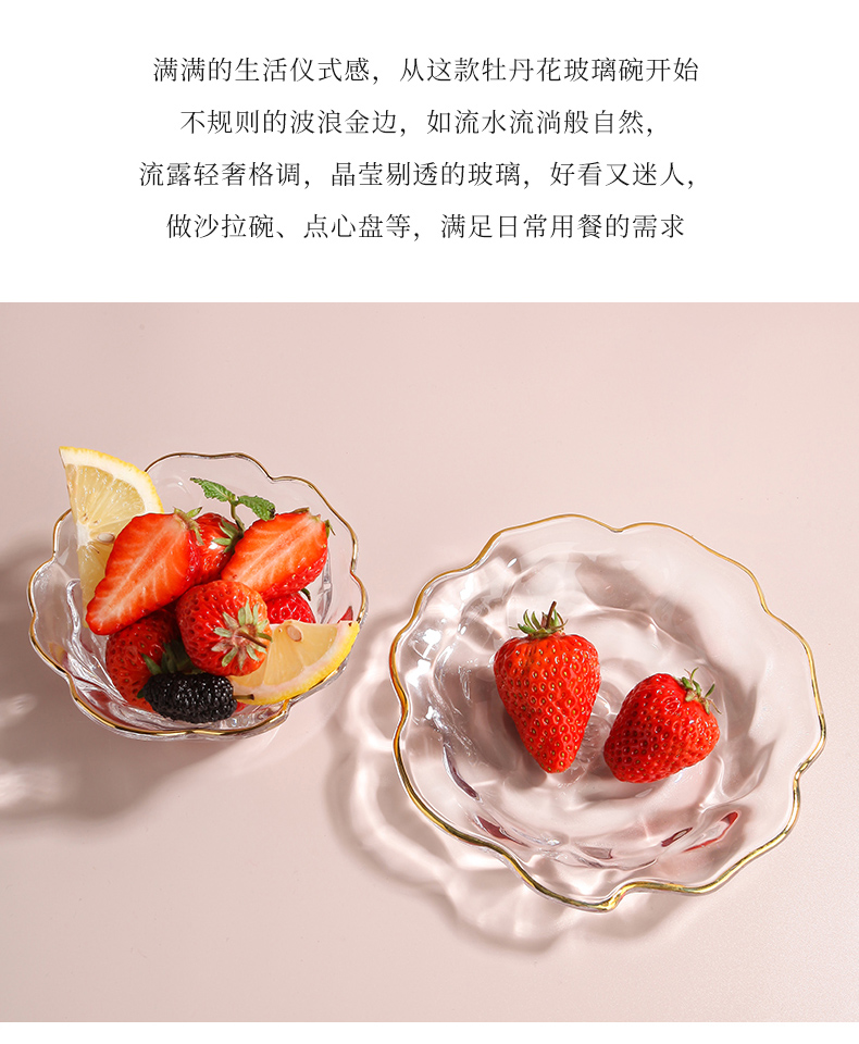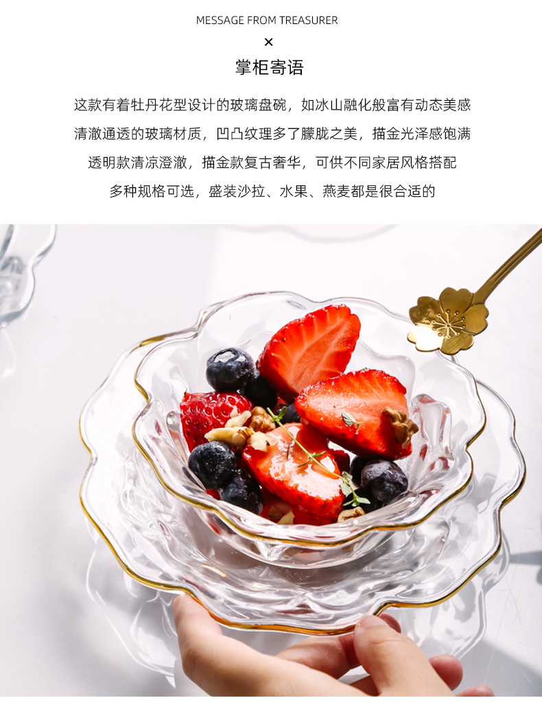 燕窝碗甜品碗玻璃创意日式金边玫瑰花银耳雪糕沙拉碗家用精致餐具