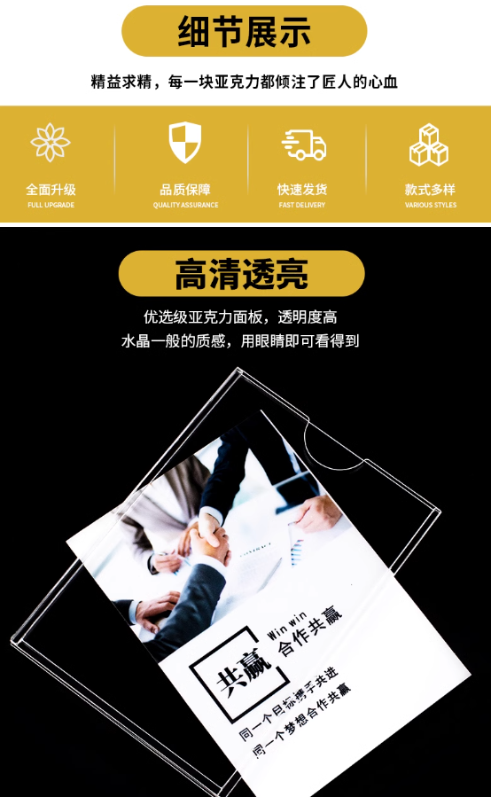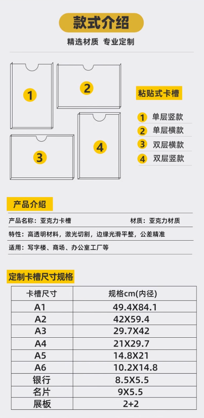 (特)A4亚克力卡槽双层插纸盒子插槽亚克力透明板寸照片标签展示盒定制