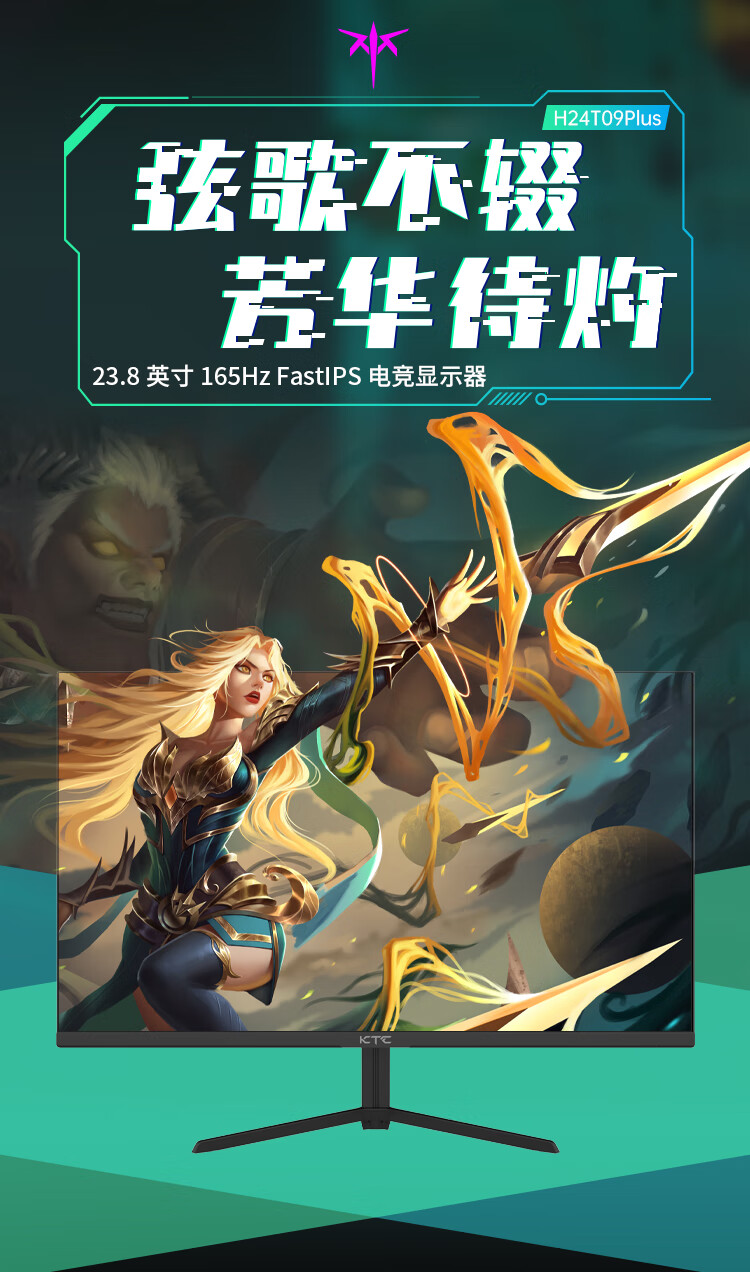 (特)KTC 23.8英寸 FHD 165Hz FastIPS屏1ms快响 低蓝光 广色域电竞电脑显示器 H24T09 Plus
