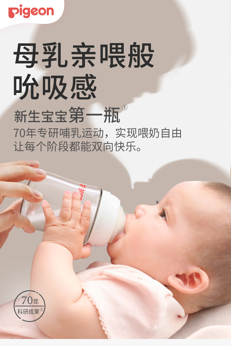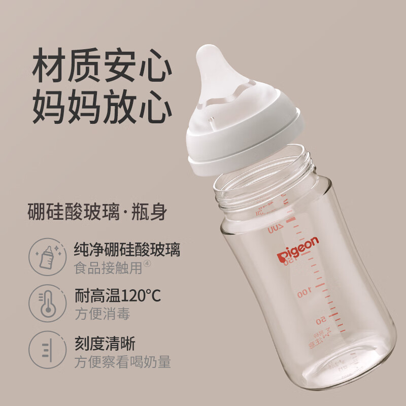 (特)贝亲(Pigeon) 婴儿玻璃奶瓶 自然实感第3代 宽口径 160ml AA186 S号1个月以上