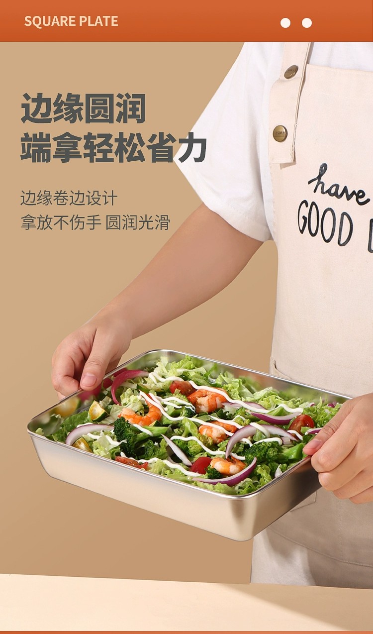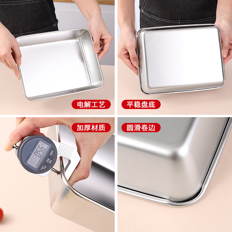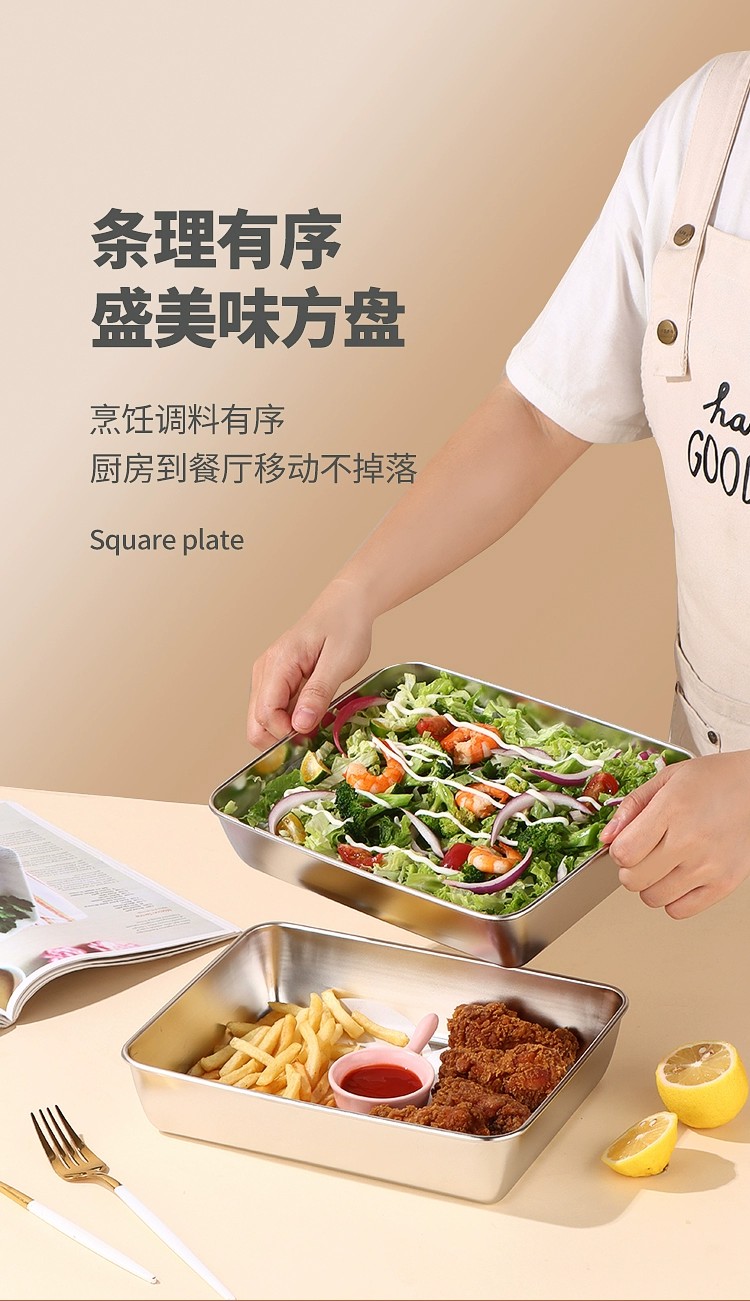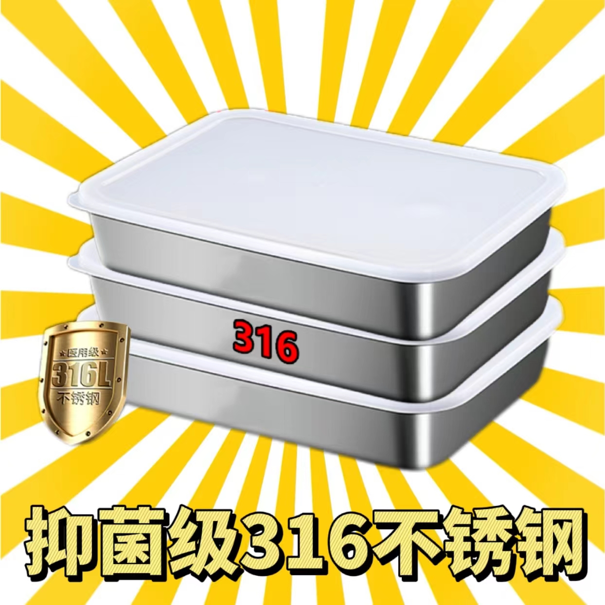 (特)316食品级不锈钢带盖方盆304保鲜盒方盘配菜盘托盘备菜盆长方形