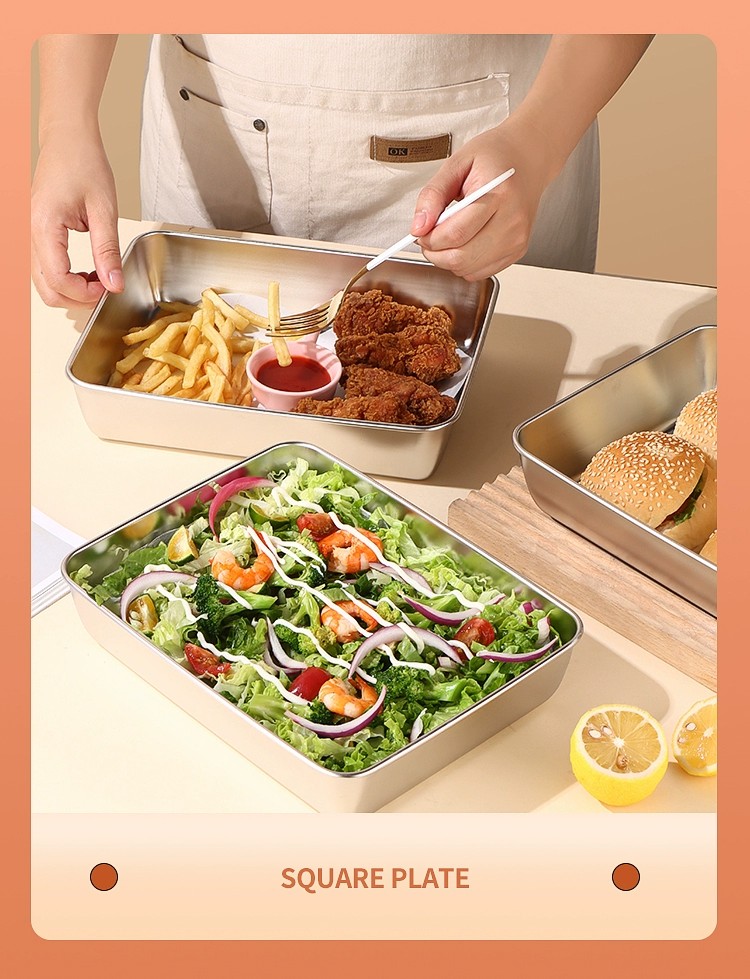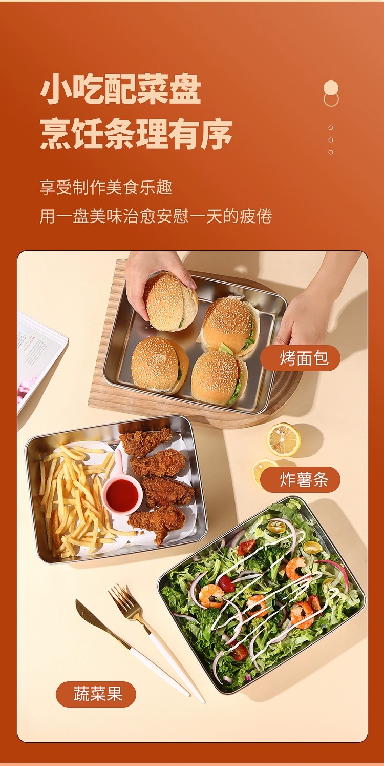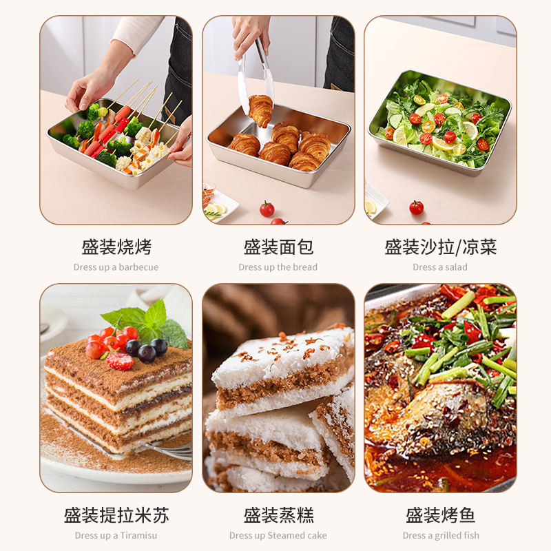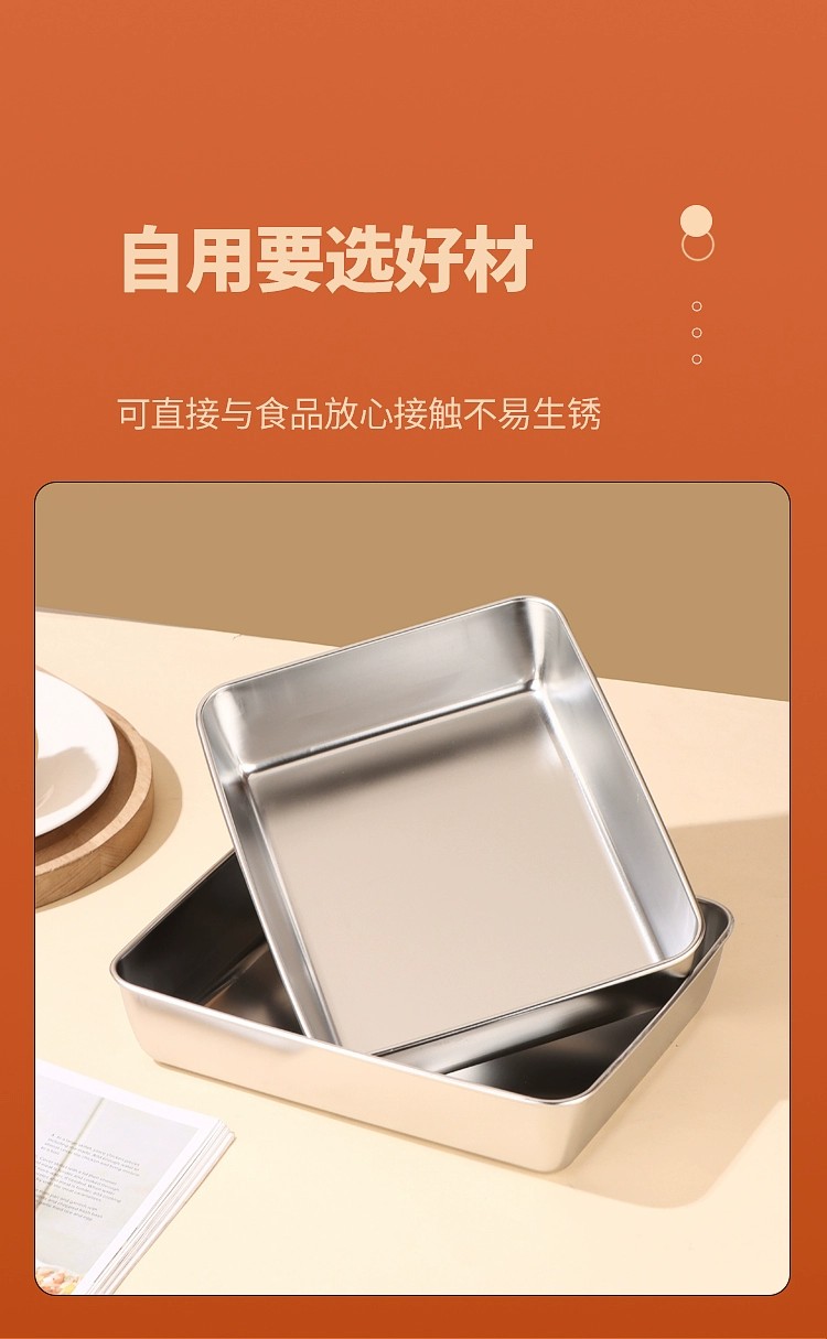 (特)316食品级不锈钢带盖方盆304保鲜盒方盘配菜盘托盘备菜盆长方形