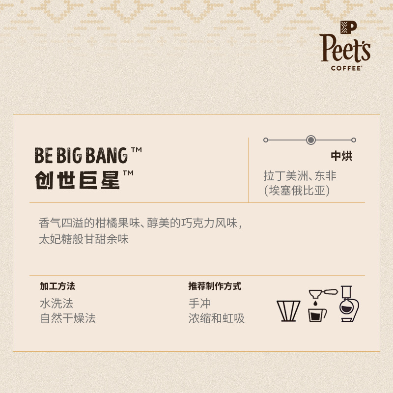 (特)Peets皮爷创世巨星大航海家新鲜中烘咖啡豆黑咖拿铁意式拼配250g