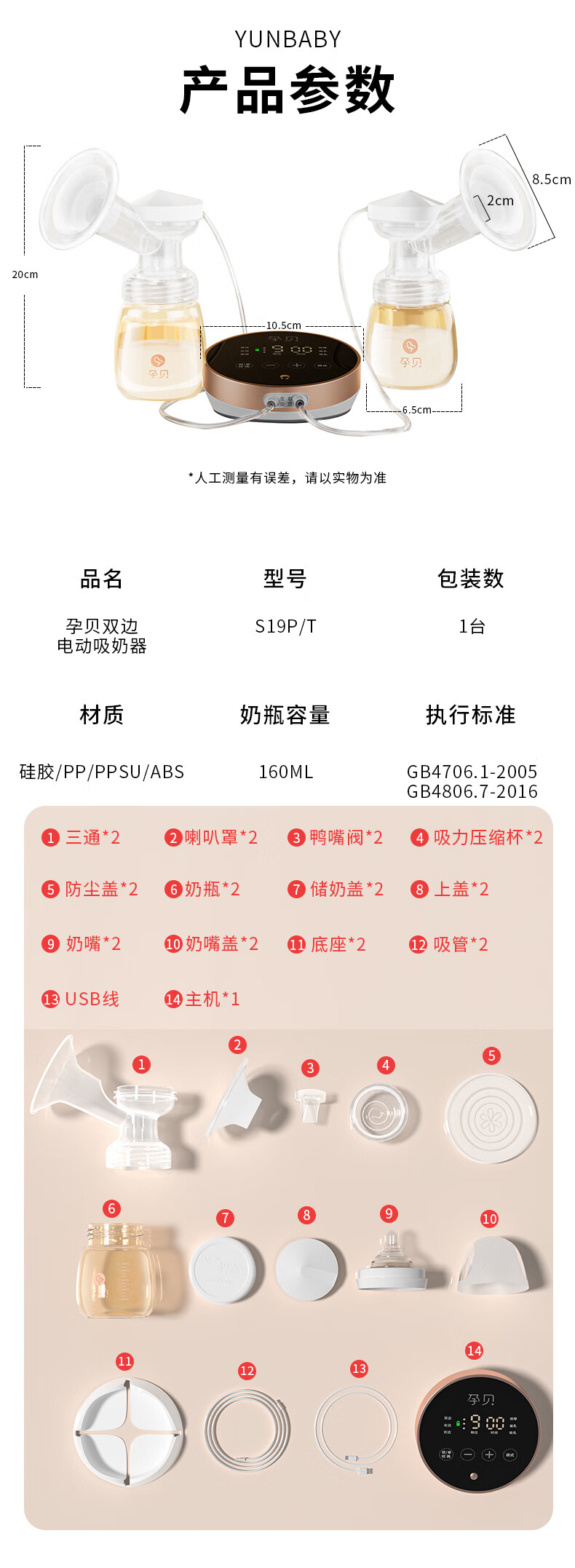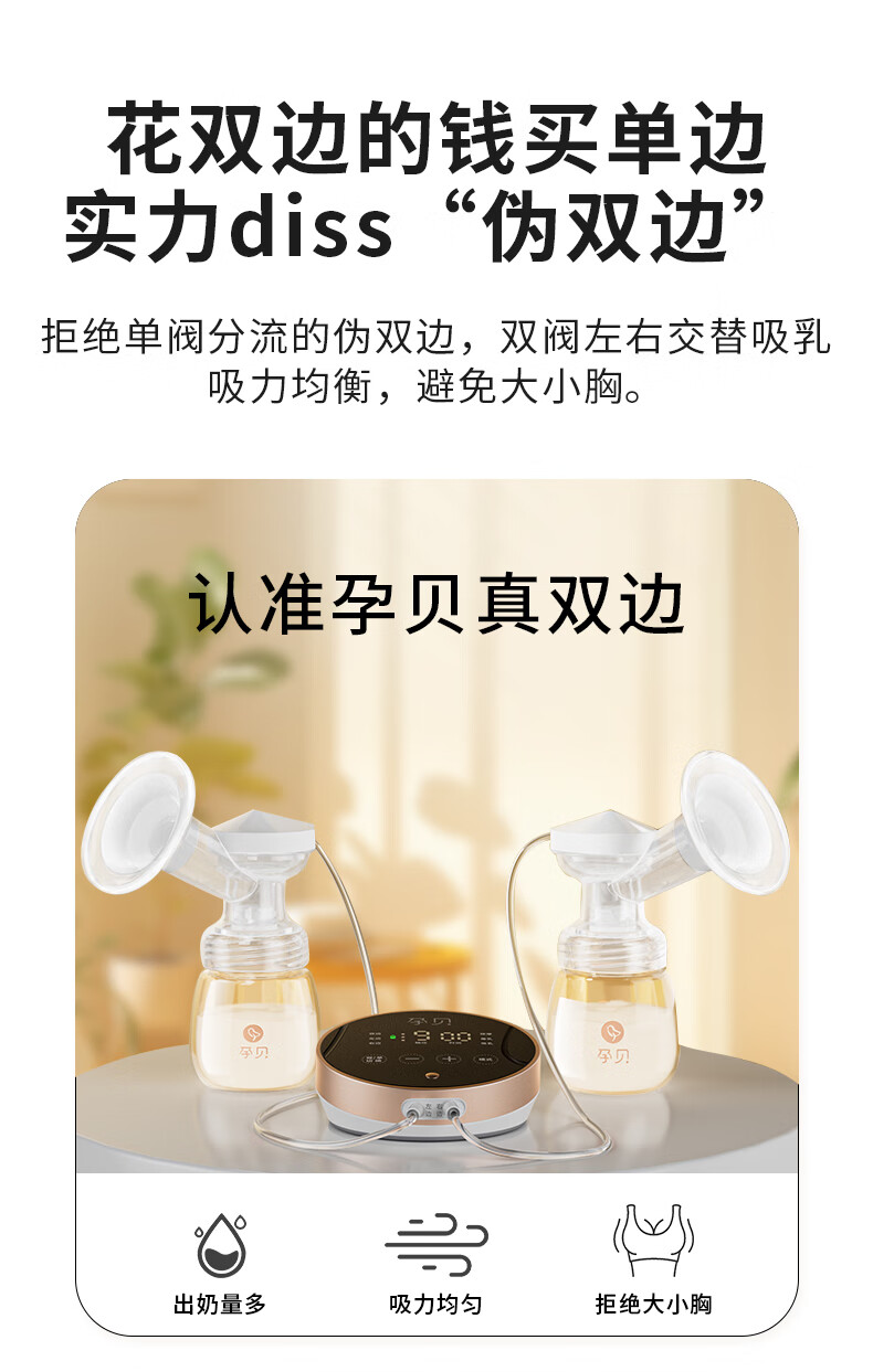 (特)孕贝双边电动吸奶器大吸力无痛变频全自动拔奶器母乳集奶产后挤