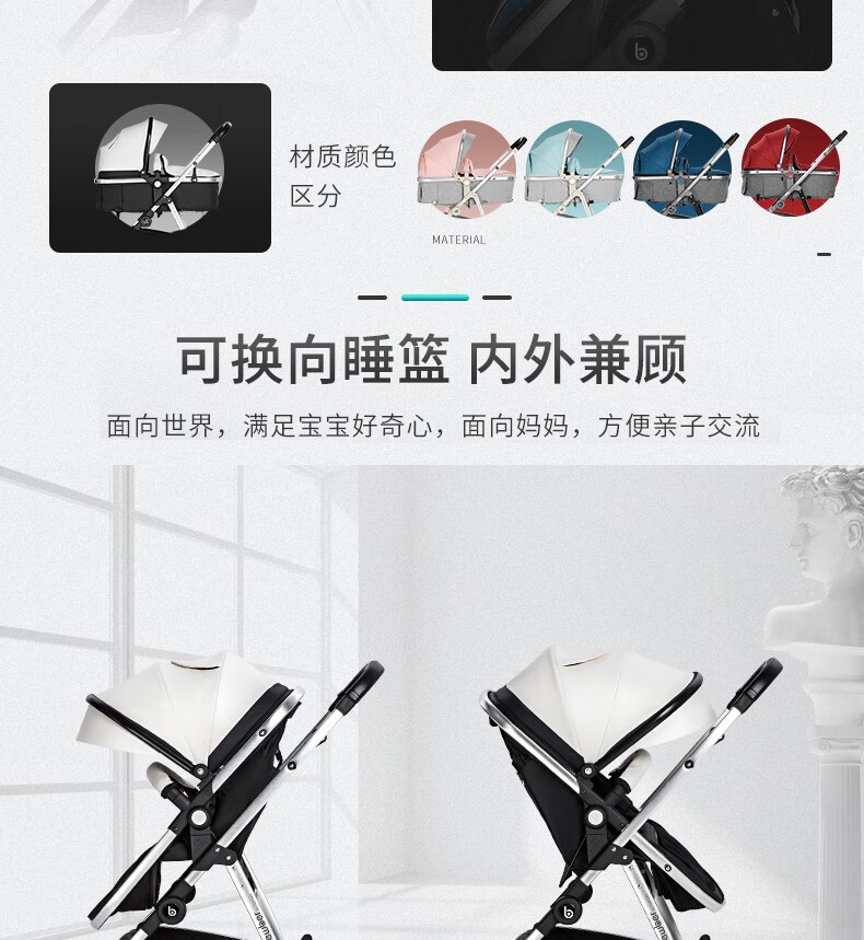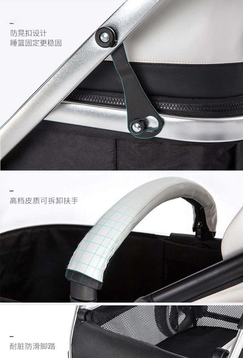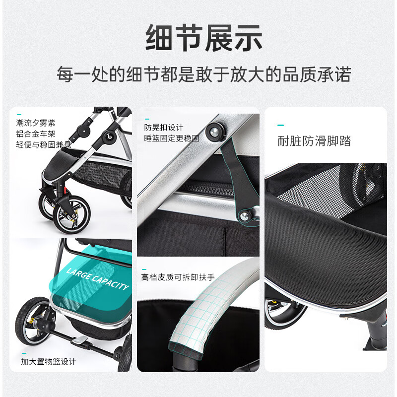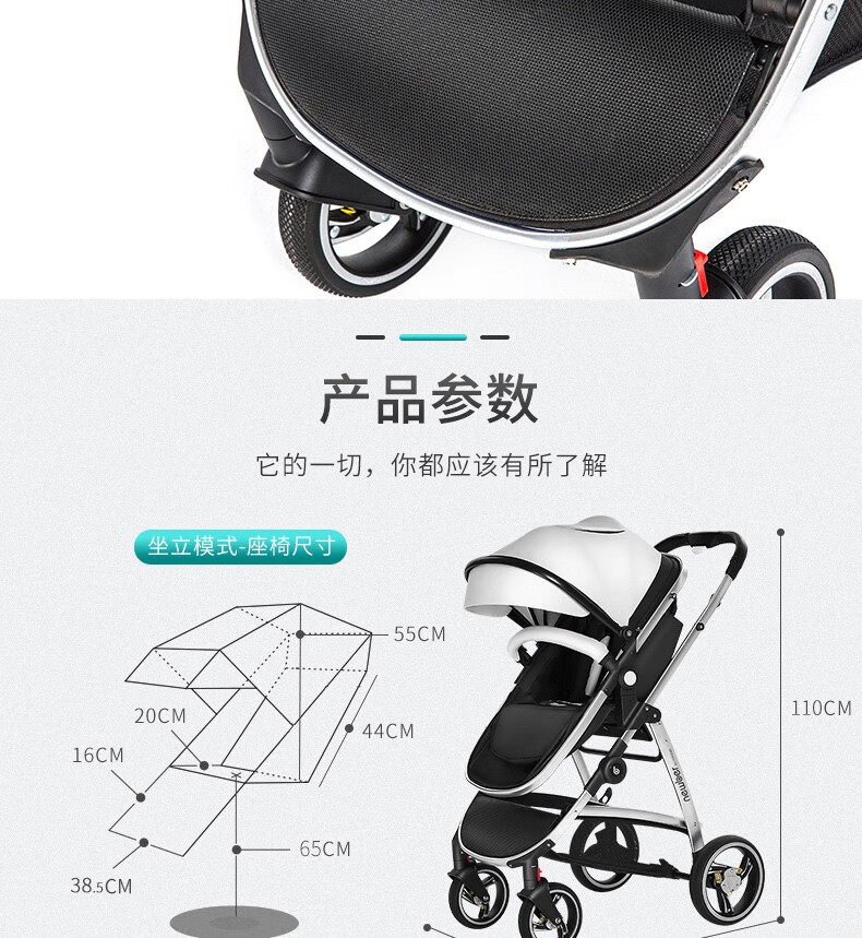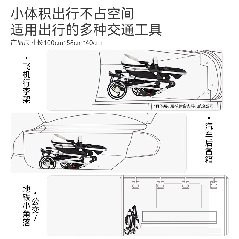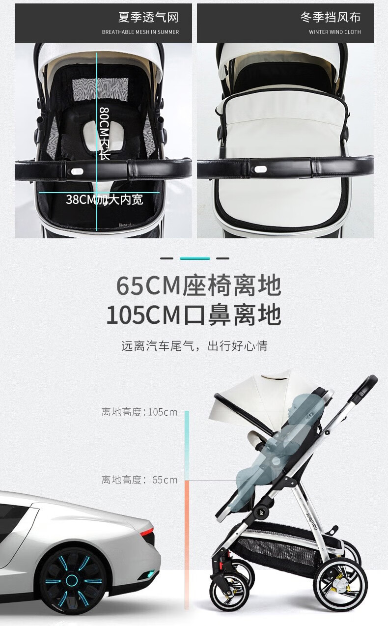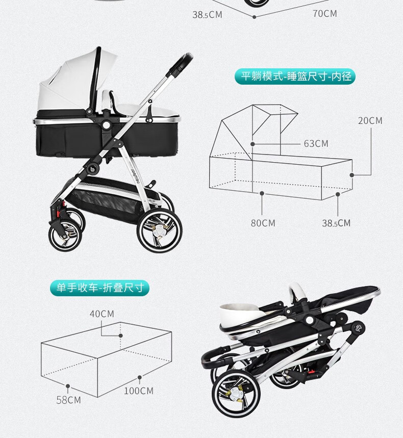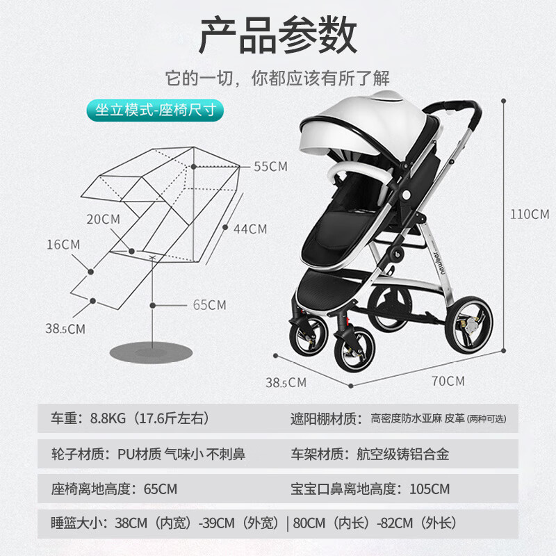纽贝耳newber婴儿车0-3岁用婴儿推车可坐可躺可折叠高景观双向可调 黑白【推车+蚊帐】808A
