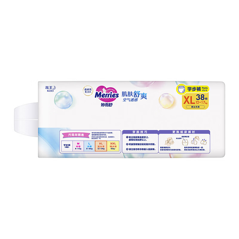 (特)花王(Merries)妙而舒婴儿尿不湿拉拉裤 学步裤XL38片