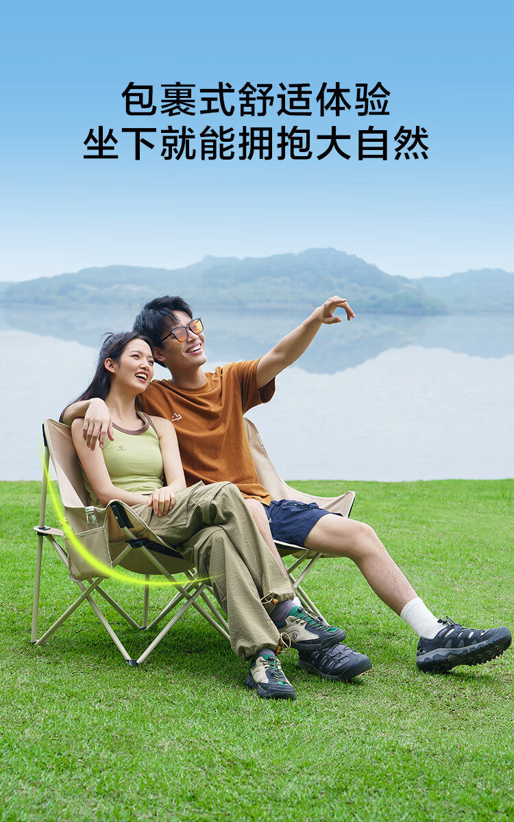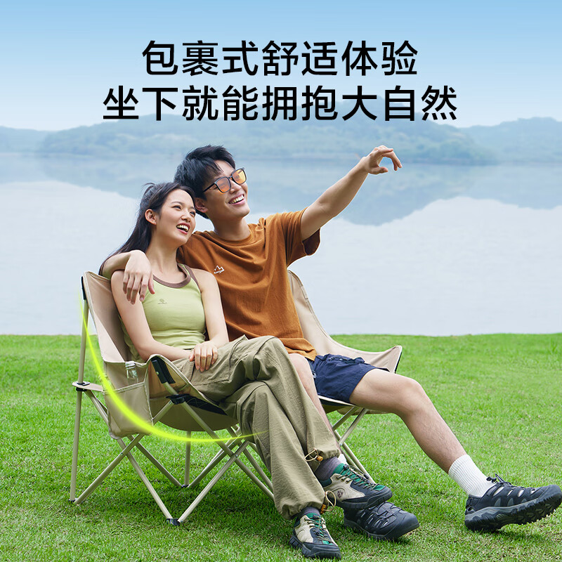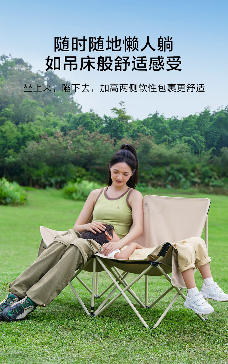 (特)京东京造户外折叠椅便携折叠月亮椅躺椅露营椅子折叠凳钓鱼 高背月亮椅