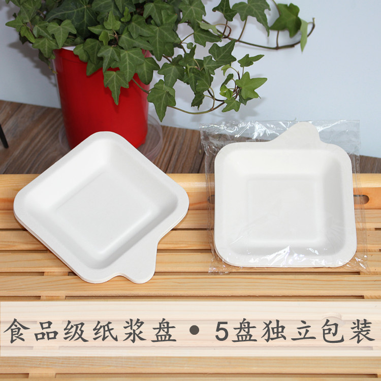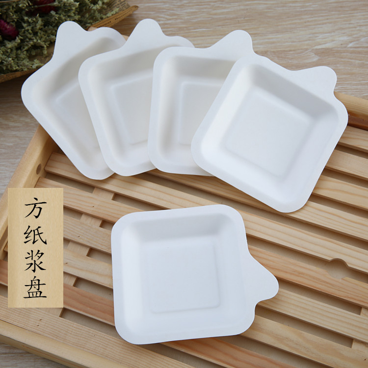 一次性方形纸盘蛋糕餐盘 蛋糕碟纸 试吃盘 纸浆盘 甘蔗浆蛋糕盘子