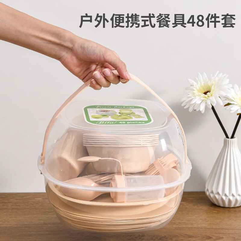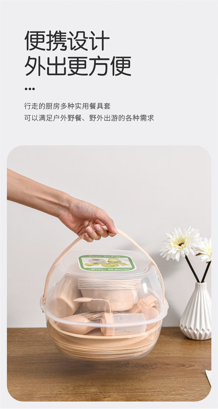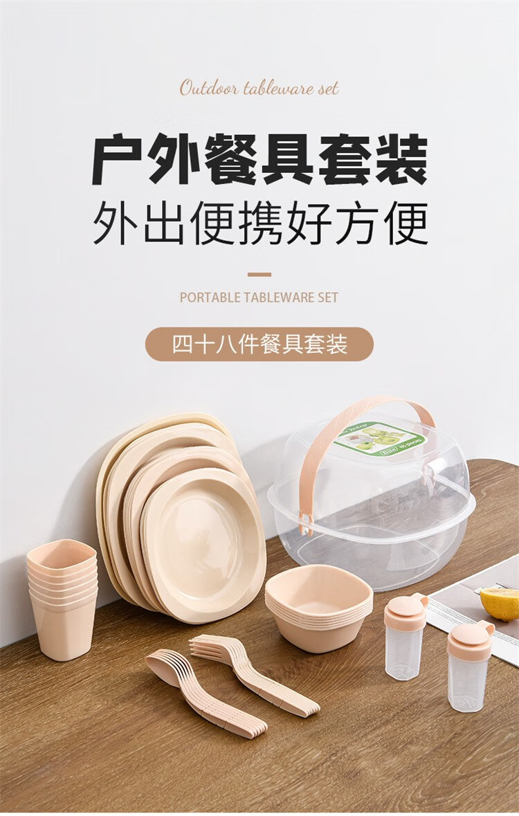 婴侍卫户外便携式餐具48件套 野餐野炊盒套装