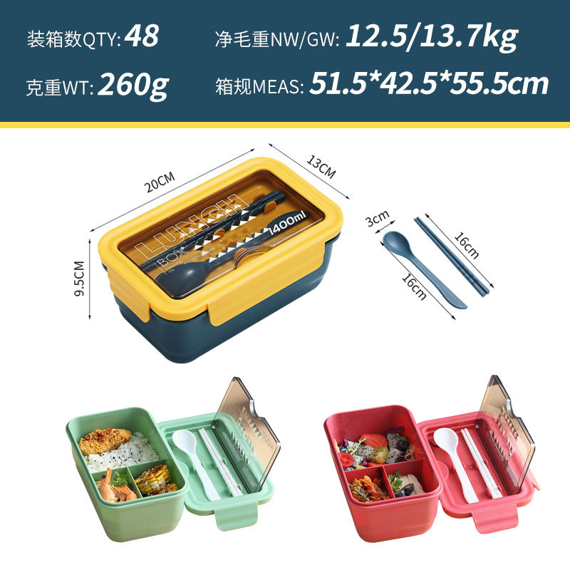 新款学生日式分格便当盒可微波炉塑料分格饭盒大容量带餐具勺筷
