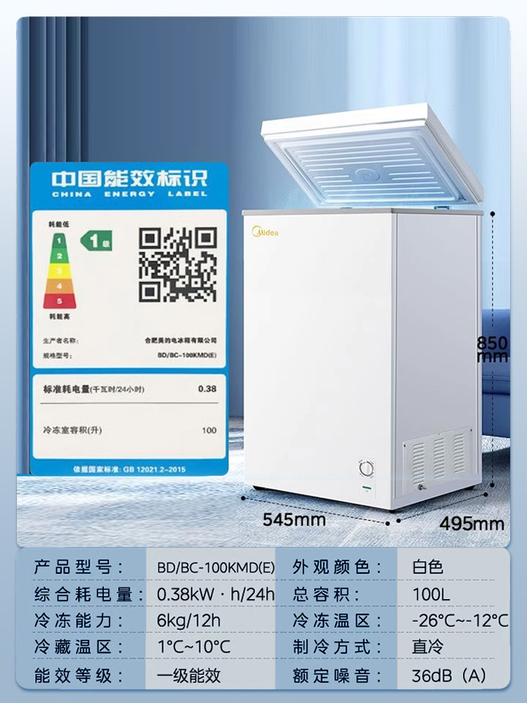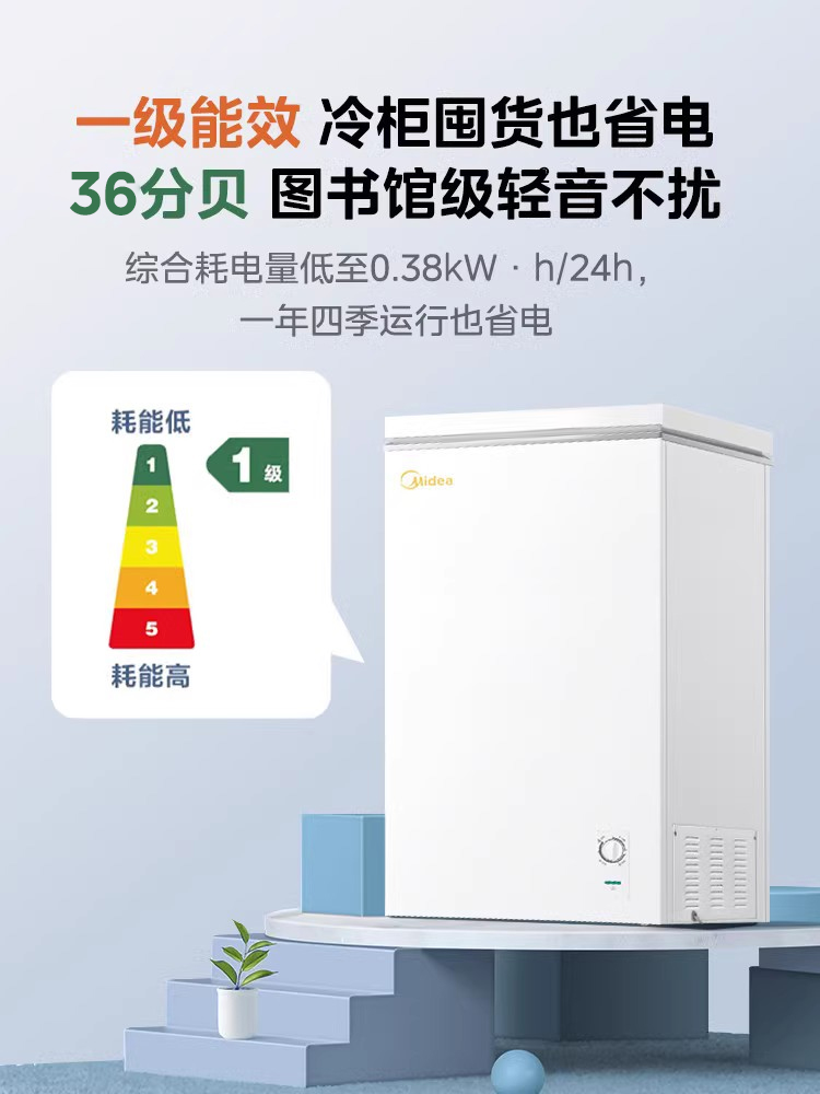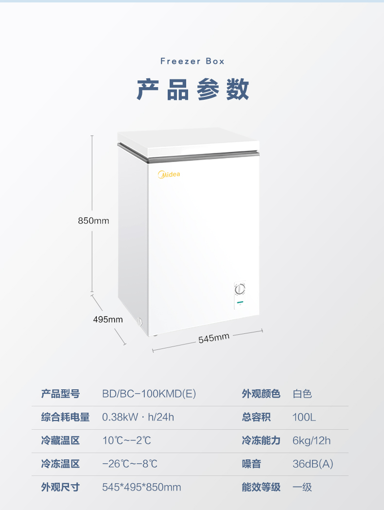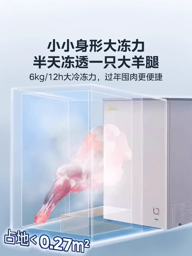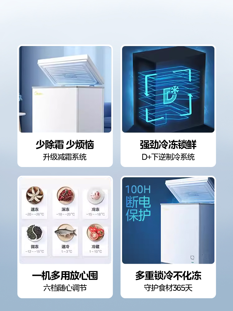 (特)美的100升小冰柜家用小型冷柜商用全冷冻柜冷藏两用单温迷你冰箱