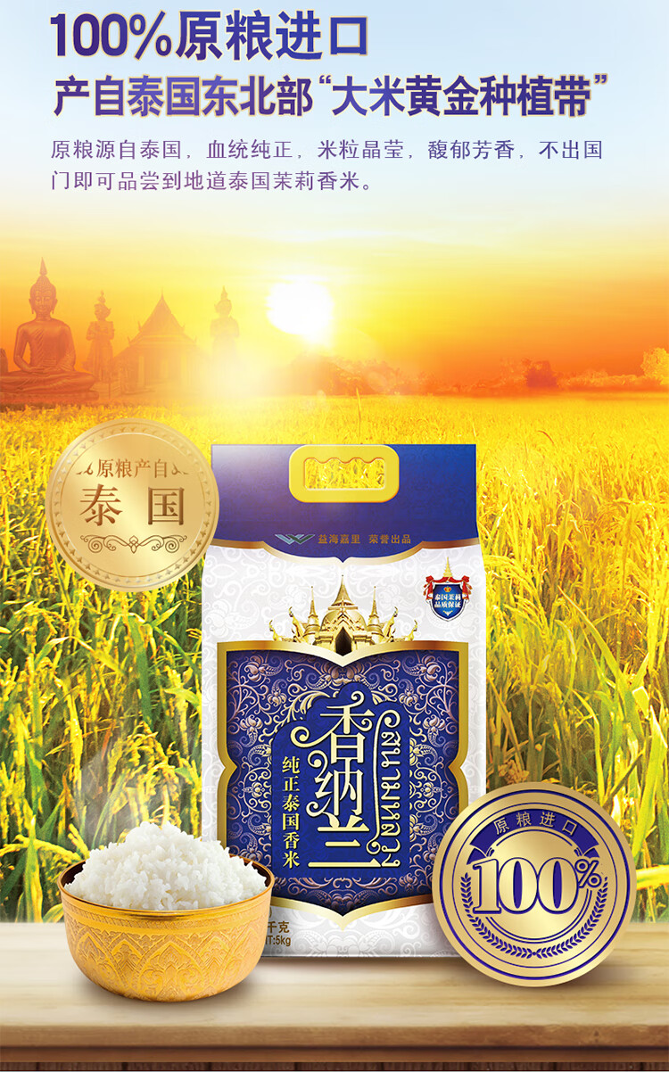 (特)金龙鱼香纳兰纯正泰国香米5KG