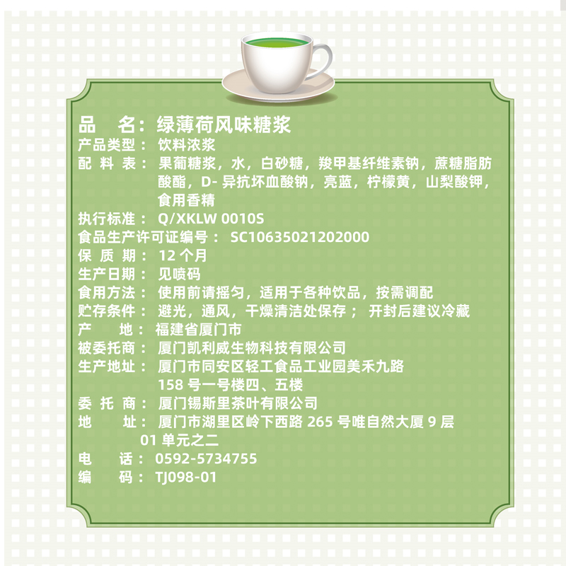 (特)锡斯里 绿薄荷糖浆益合同款薄荷汁奶绿鸡尾酒气泡水奶茶原料1.3kg