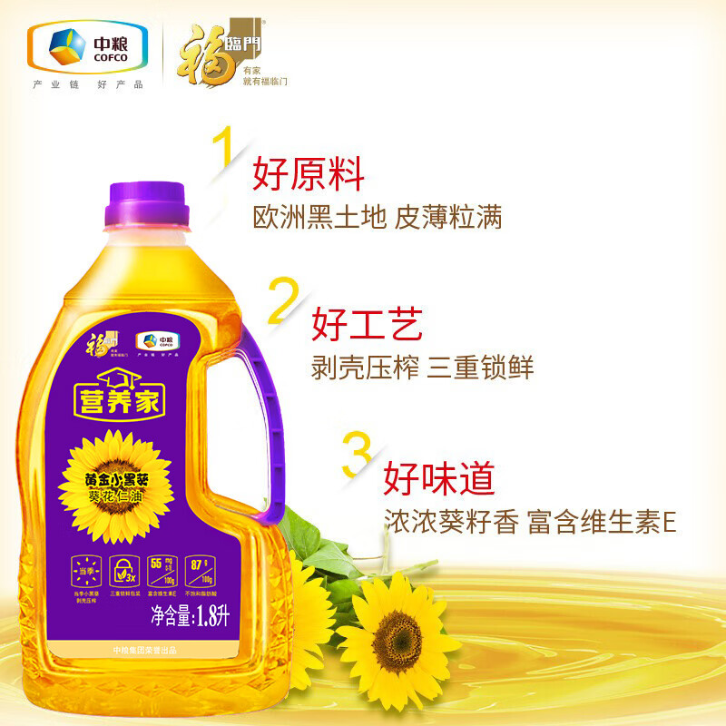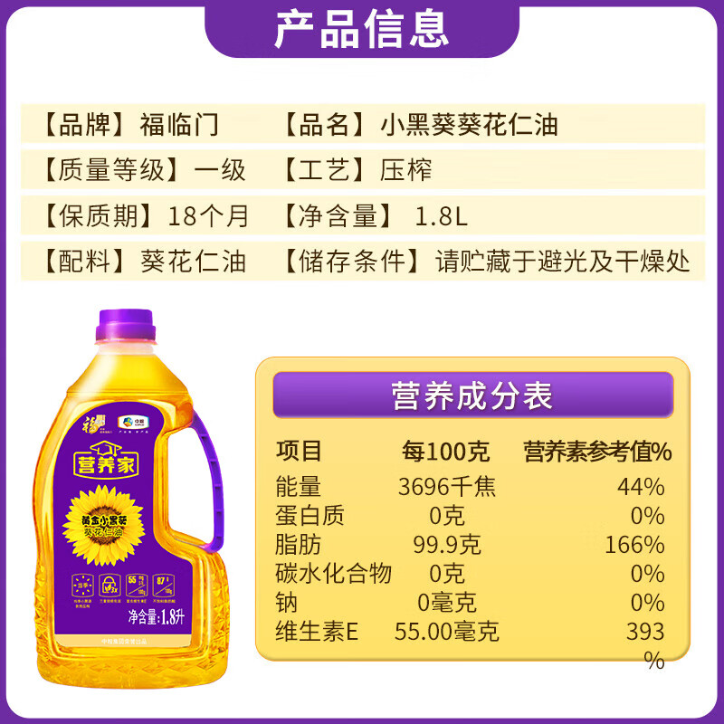 (特)福临门营养家黄金小黑葵葵花仁油1.8L