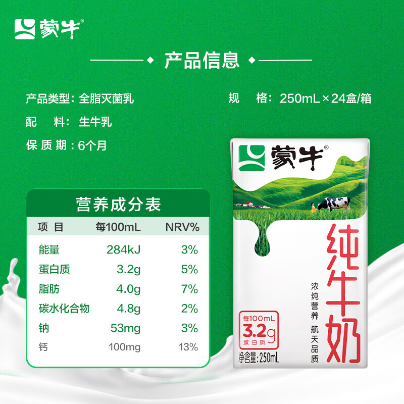 (特)蒙牛纯牛奶利乐包250ml×24