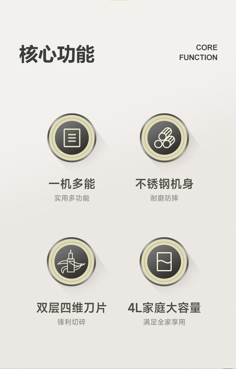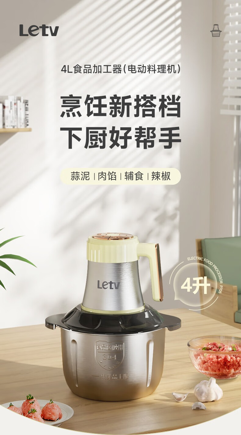 LETV乐视 双刀绞肉机不锈钢多能料理机家用4L大容量电动绞馅机搅拌机P705