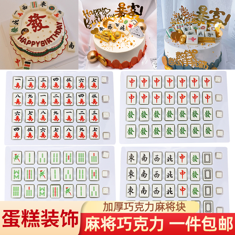 加厚巧克力麻将蛋糕装饰摆件可食用生日麻将牌烘焙蛋糕插件配件