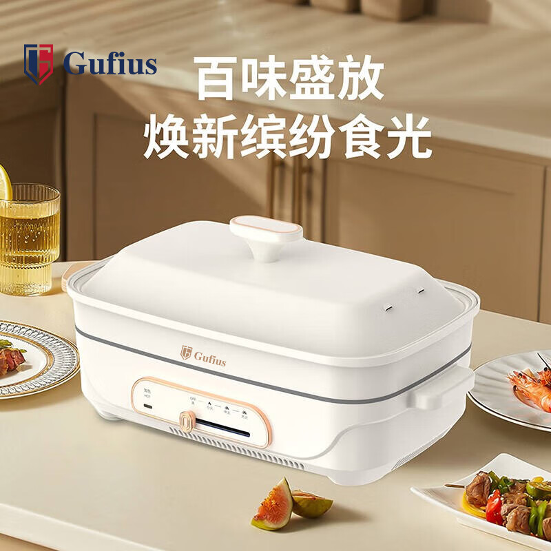 古菲斯(GUFIUS)多功能防干烧家用电蒸锅 电火锅 蒸包子锅 电煮锅 电炒锅 电锅一体锅 煮蛋神器 电火锅 GFZG-21B2 版本