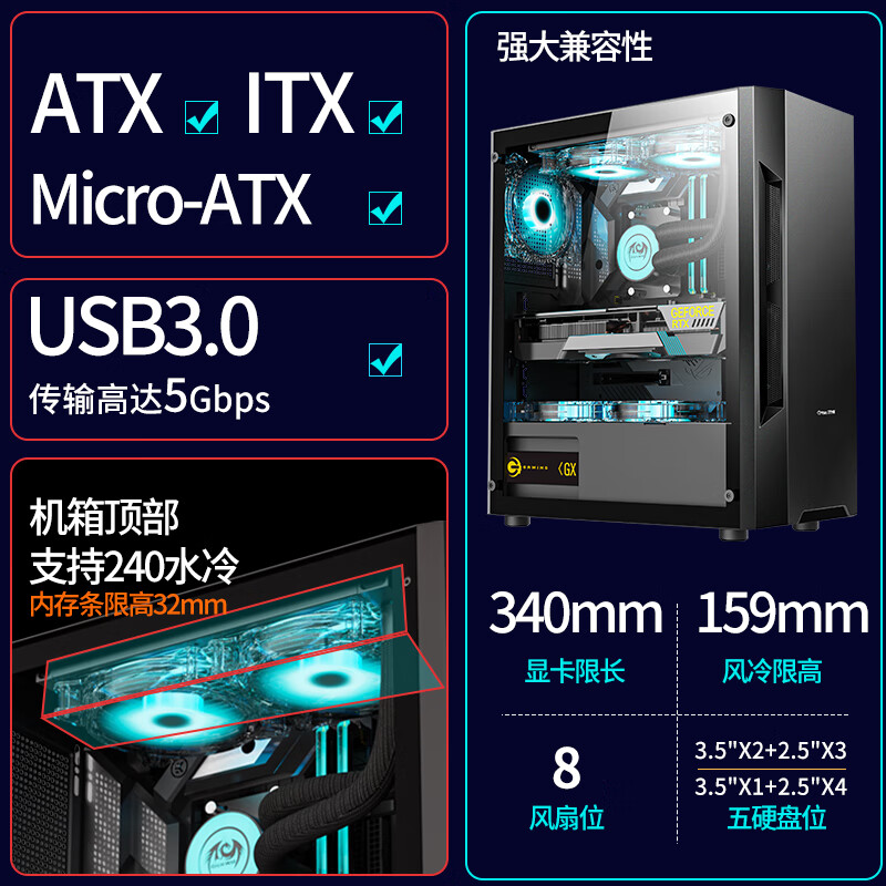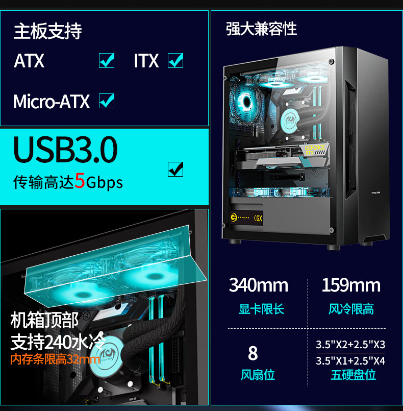 (特)长城(Great Wall)本色K13升级版电脑游戏机箱