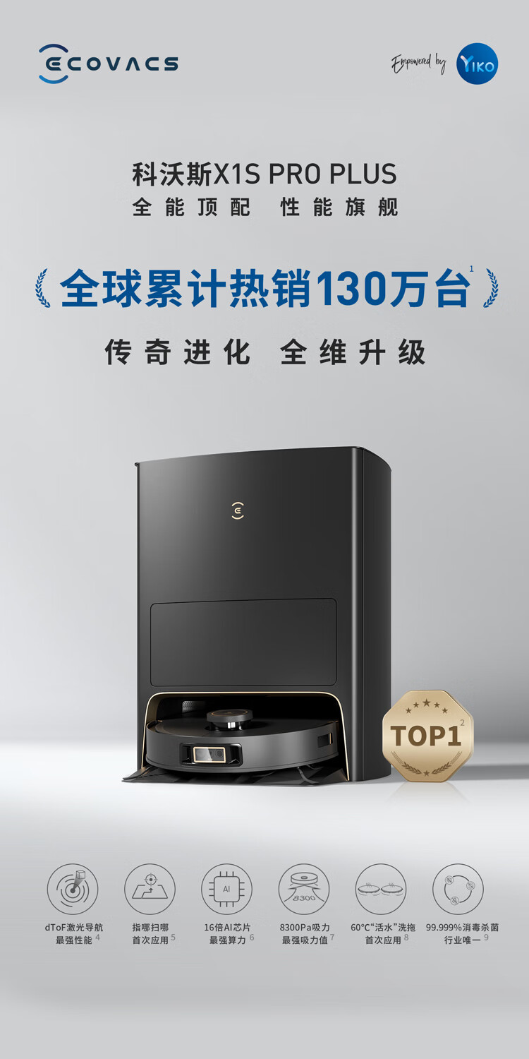 科沃斯(ECOVACS)扫地机器人X1S PRO PLUS上下水版扫拖一体自动集免洗抹布智能家用洗地机集尘全自动清洗全能版