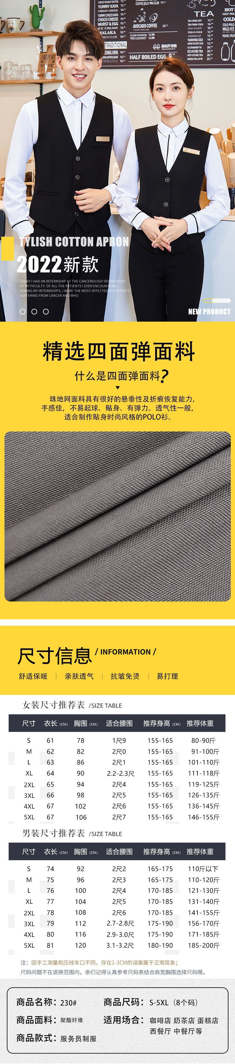 酒店ktv服务员工作服马甲套装男酒吧夜场前台餐厅台球室工装制服