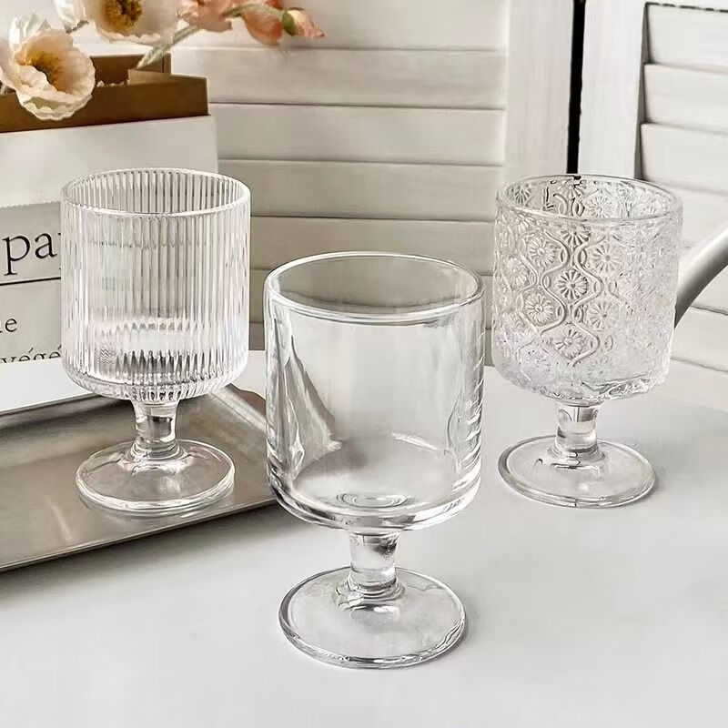 (特)创意复古刻花玻璃杯迷你果酒杯精致高脚甜酒杯高颜值小酒杯一口杯