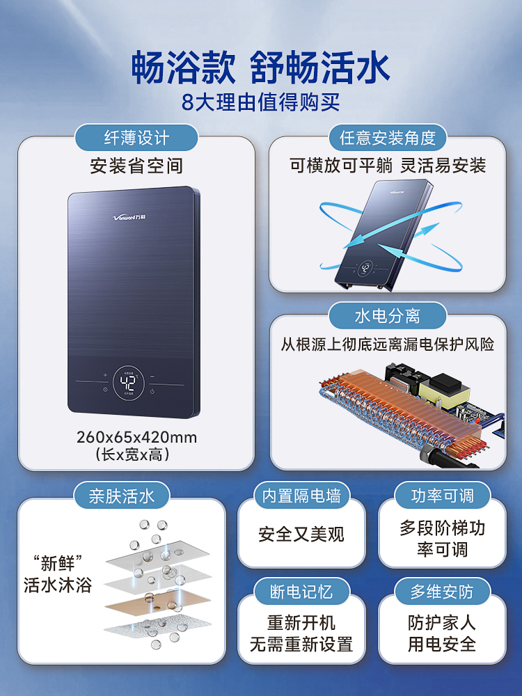 (特)万和即热式电热水器即开即热恒温家用速热式热水器淋浴洗澡过水热